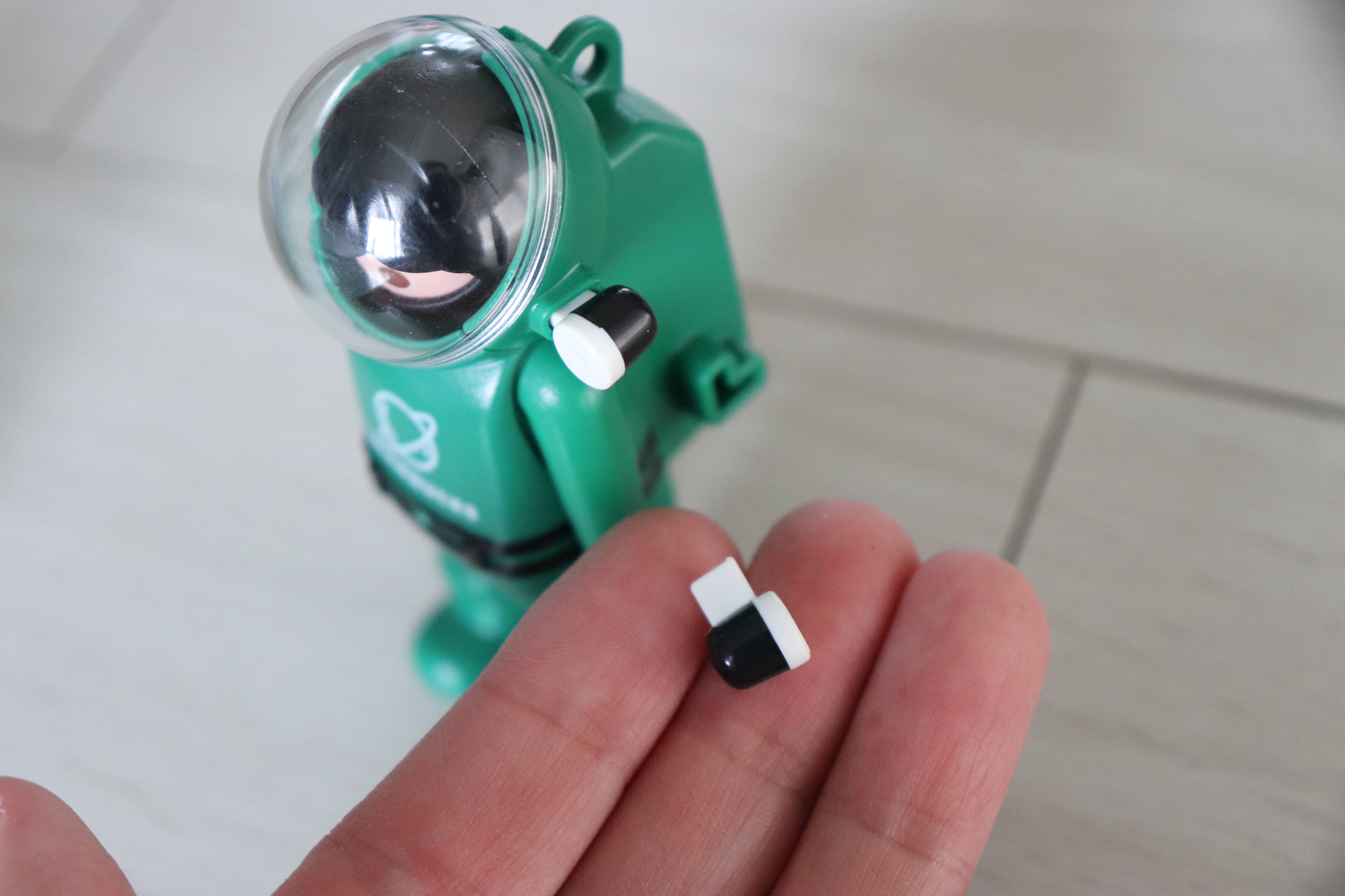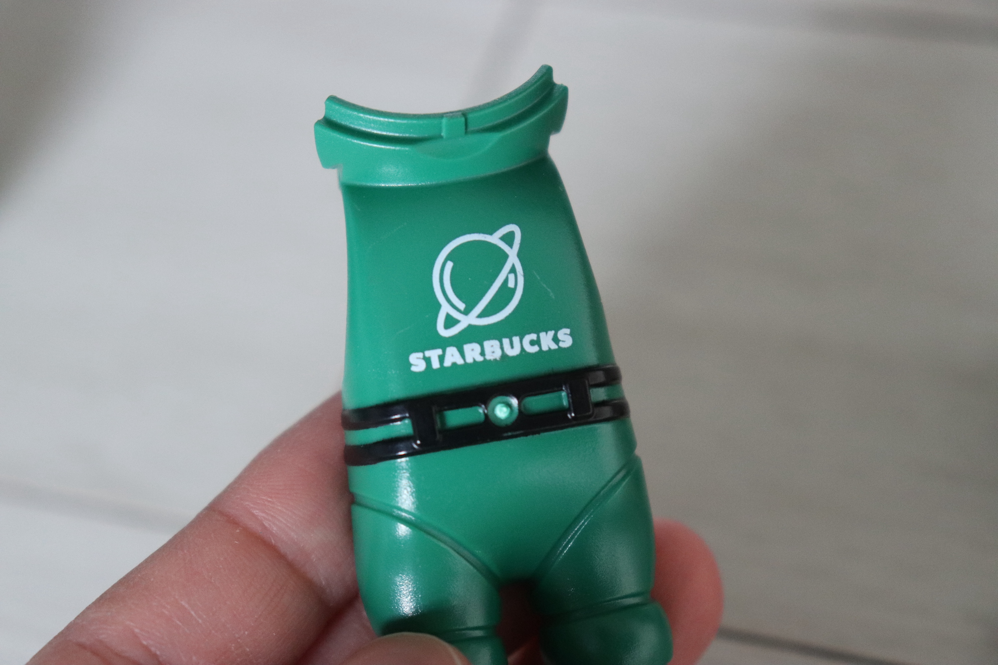 이 고무링은 어디에 쓰는건지 아무리 고민해봐도 알 수가 없었다. 그래서 스타벅스 인스타그램 피드에 들어가서 레오 피규어를 관찰해보았는데 다리에 끼워져 있었다. 고무링을 끼워주니 앞뒤로 조립되어 있는 우주복이 고정된 느낌이 들었다.