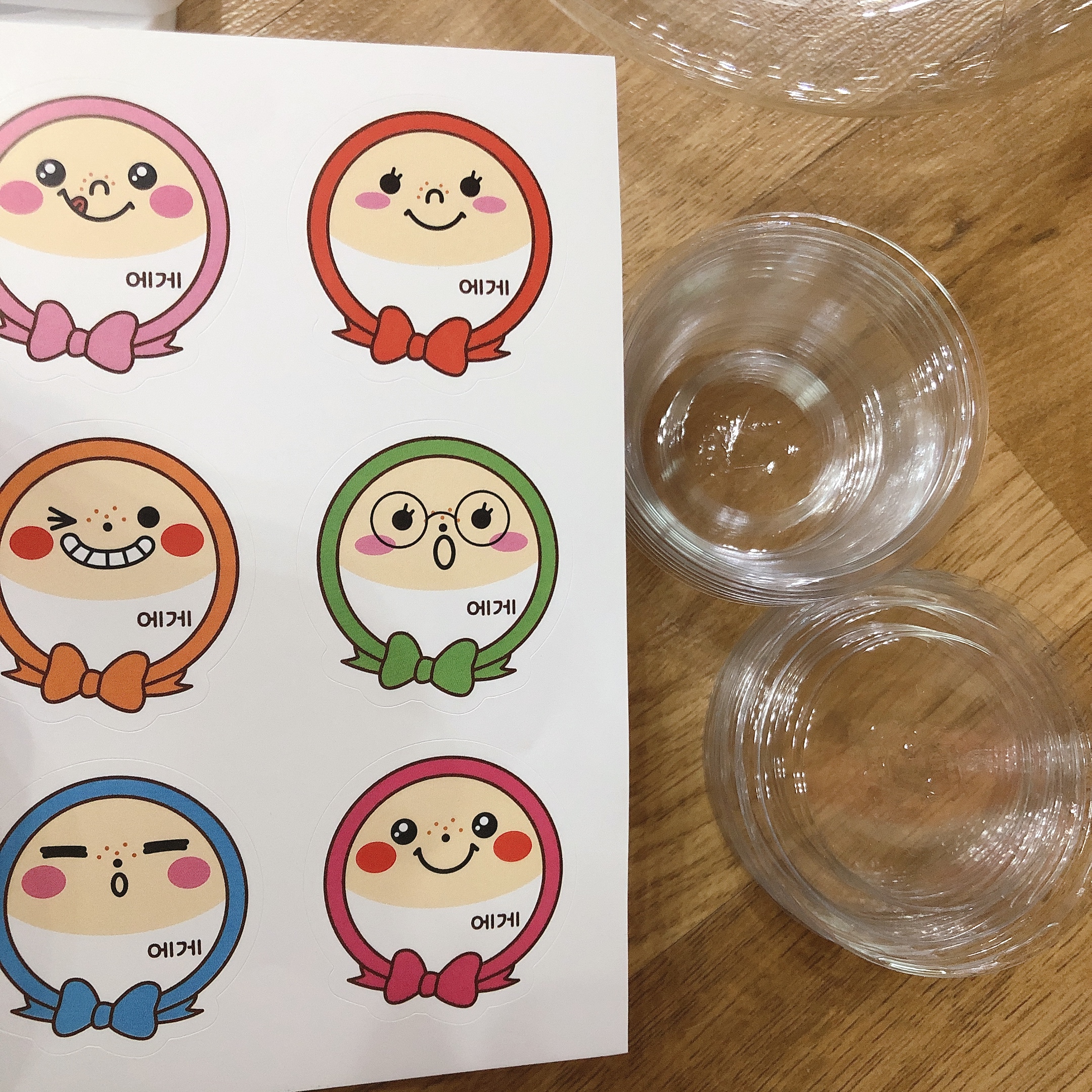 먼저 데코스티커를 미니수조에 붙여서 예쁘게 꾸며준다. 아이들이 미니 수조를 꾸미는 동안 엄마는 응고액 준비하기~