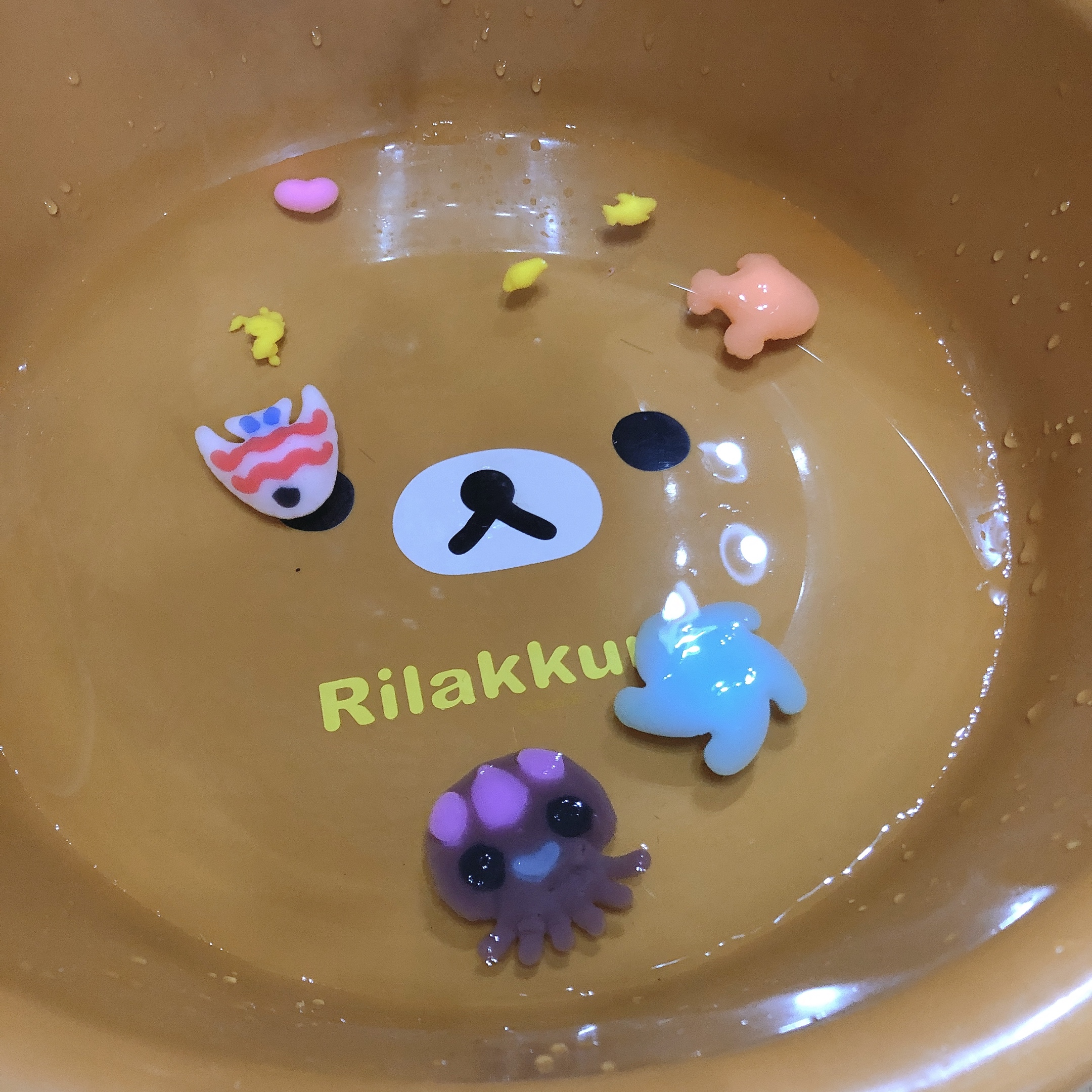 하룻밤이 지나고 나니 캐릭터들이 모두 통통 + 단단해져서 일반 수돗물을 담은 미니 수조에 옮겨 주었다. 단단하게 완성된 캐릭터는 일반 수돗물이 담긴 투명 케이스에 넣어 보관하거나 친구에게 선물할 수도 있다. 만약 캐릭터를 물 밖에 꺼내놓으면 점점 수분이 증발하여 말라서 형태가 사라진다고 한다. 아직 실험은 해보지 못했다.