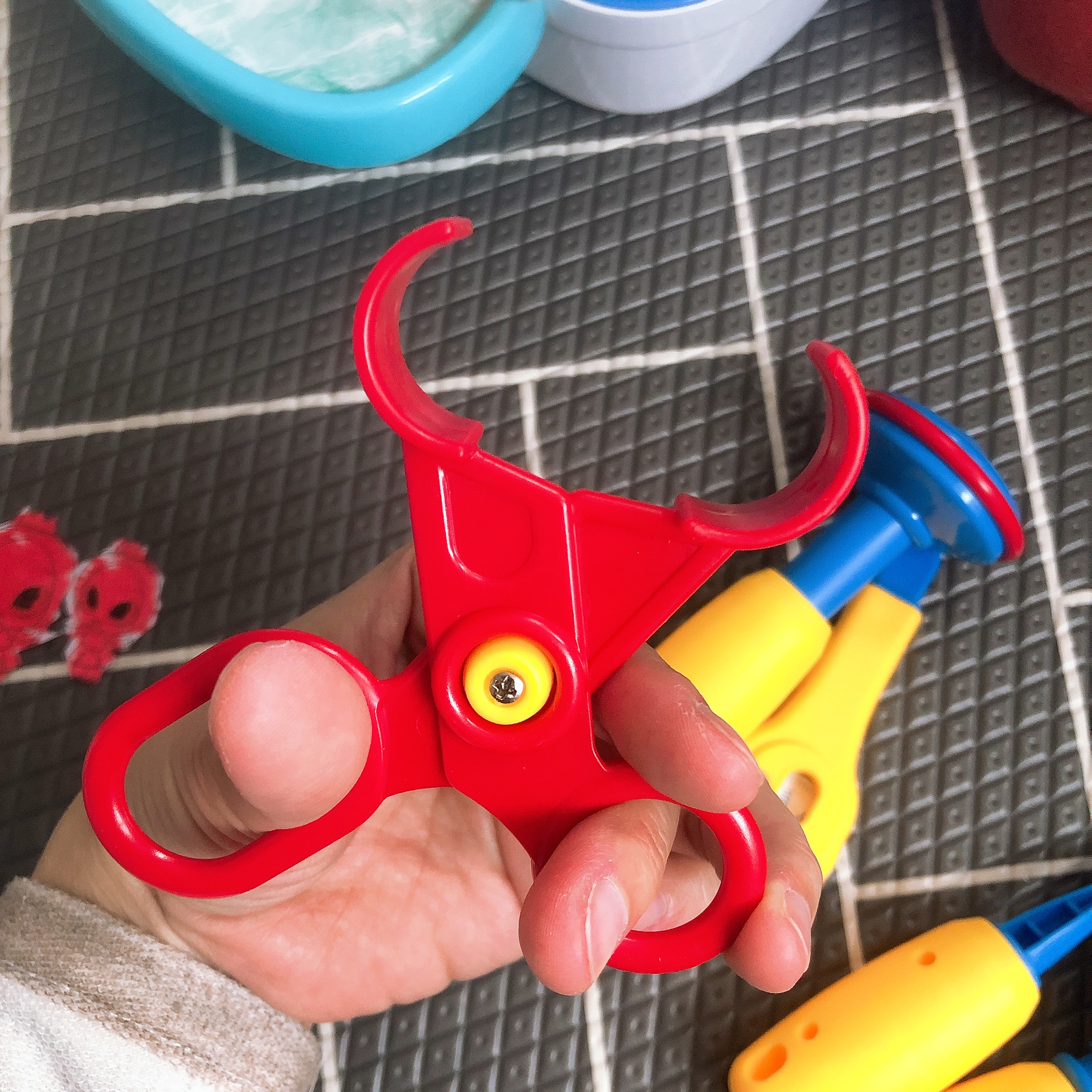 핀셋, 의료용 가위, 안경, 주사기, 체온계, 반사경, 오토스코프, 반응망치 등 다양한 진찰도구들을 활용하여 역할놀이가 가능하다.