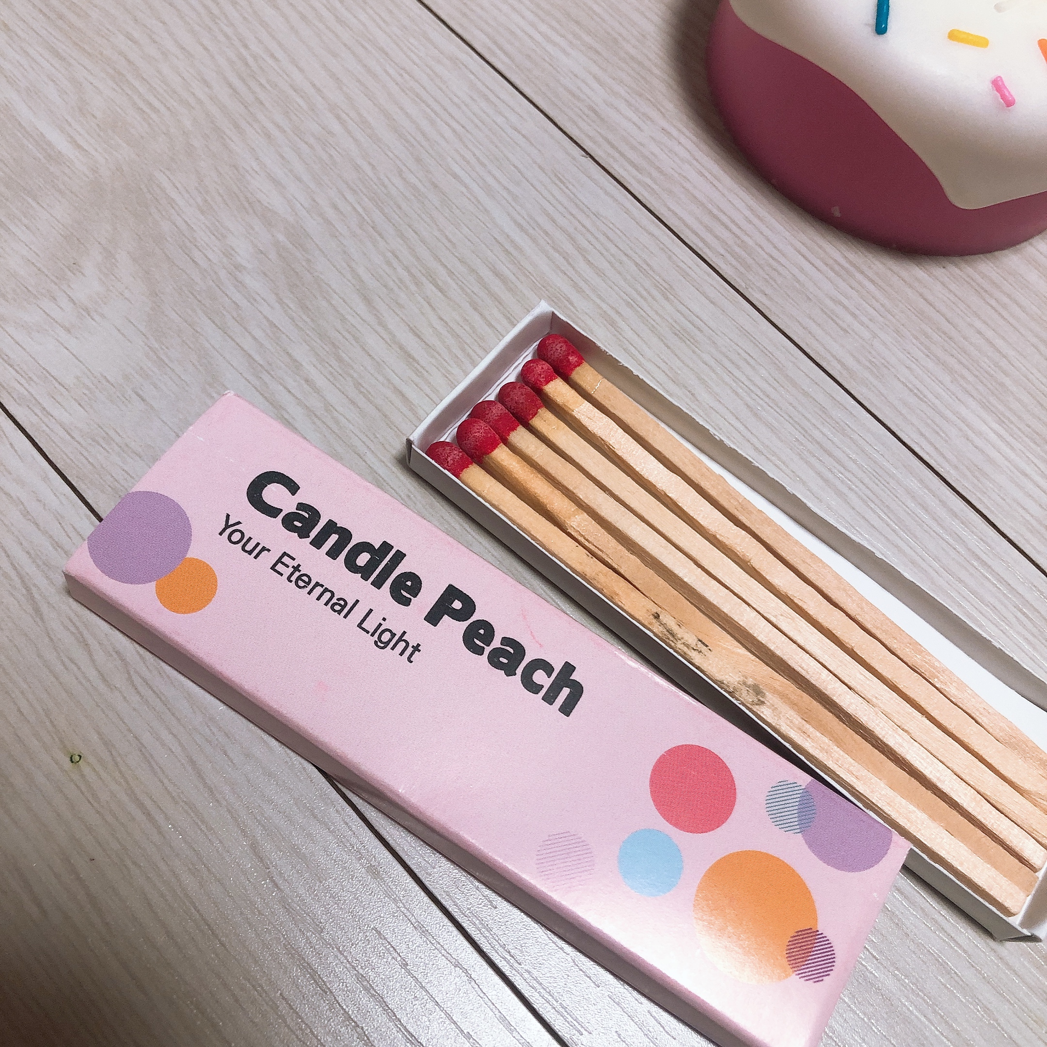 지름이 약 7cm, 무게가 120~130g 정도로 작고 가볍다. (으악 귀여워!) 캔들피치 성냥도 함께 받을 수 있는데 다른 성냥들보다 길이가 길어서 훨씬 안정적이다.