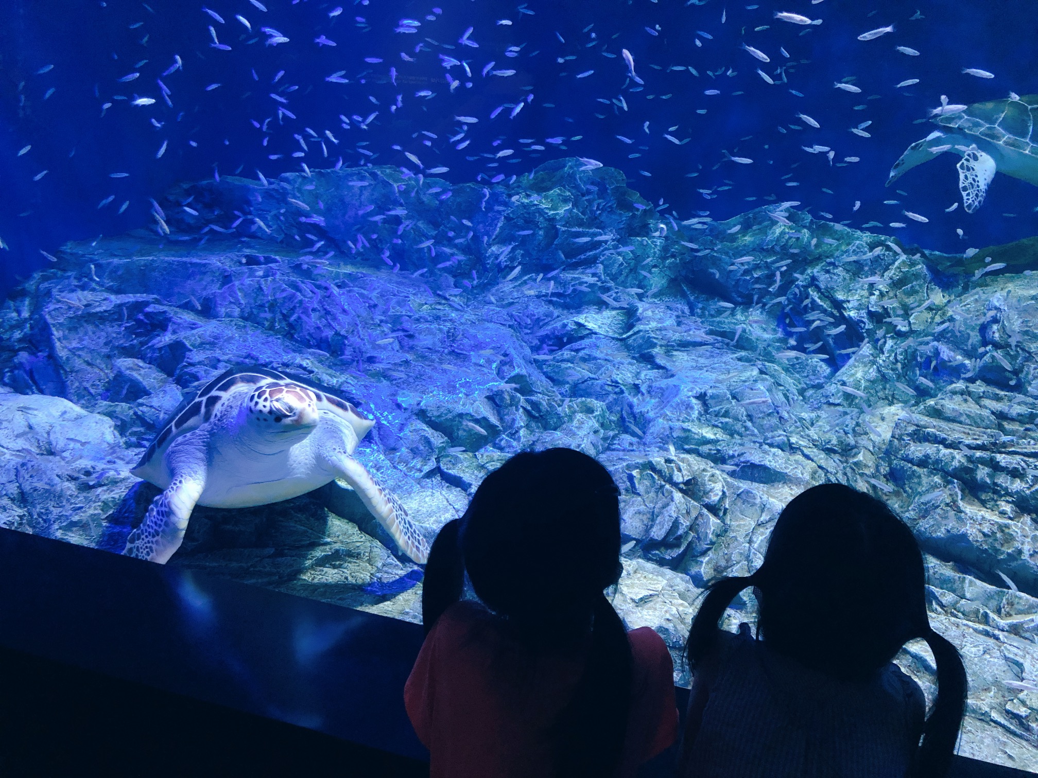 아쿠아플라넷에 들어가자마자 우리를 맞아주는 건 커다란 바다거북이였다. 물고기 떼와 함께 유유히 헤엄치는 거북이를 한참동안 멍하니 바라보았다. 마치 우리가 바닷속에 들어온 것만 같은 기분이었다.