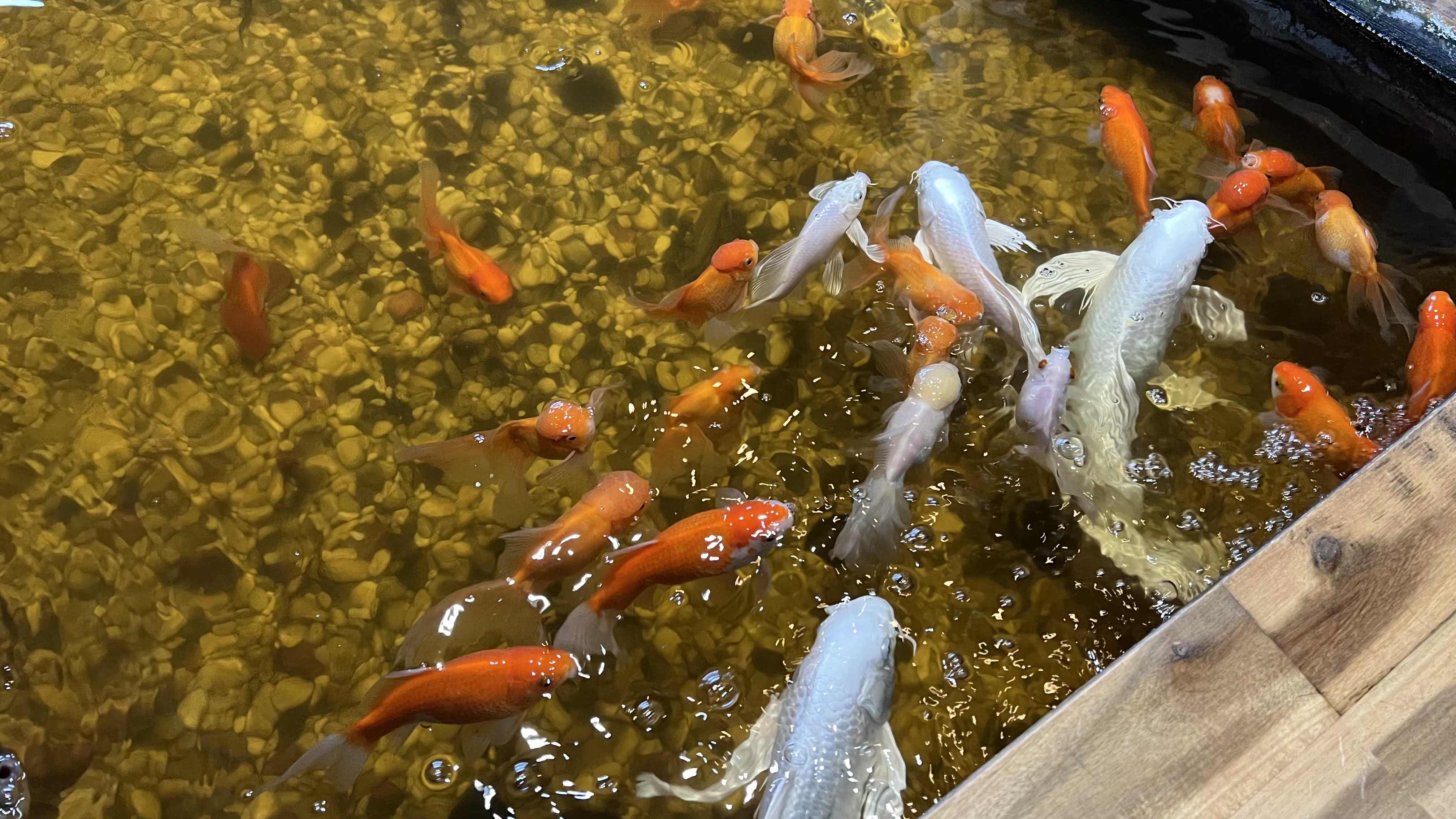 중앙 부분에 커다란 수족관이 있고 여러 종류의 물고기가 살고 있는데 이 물고기들에게도 먹이 주기 체험을 할 수 있다.