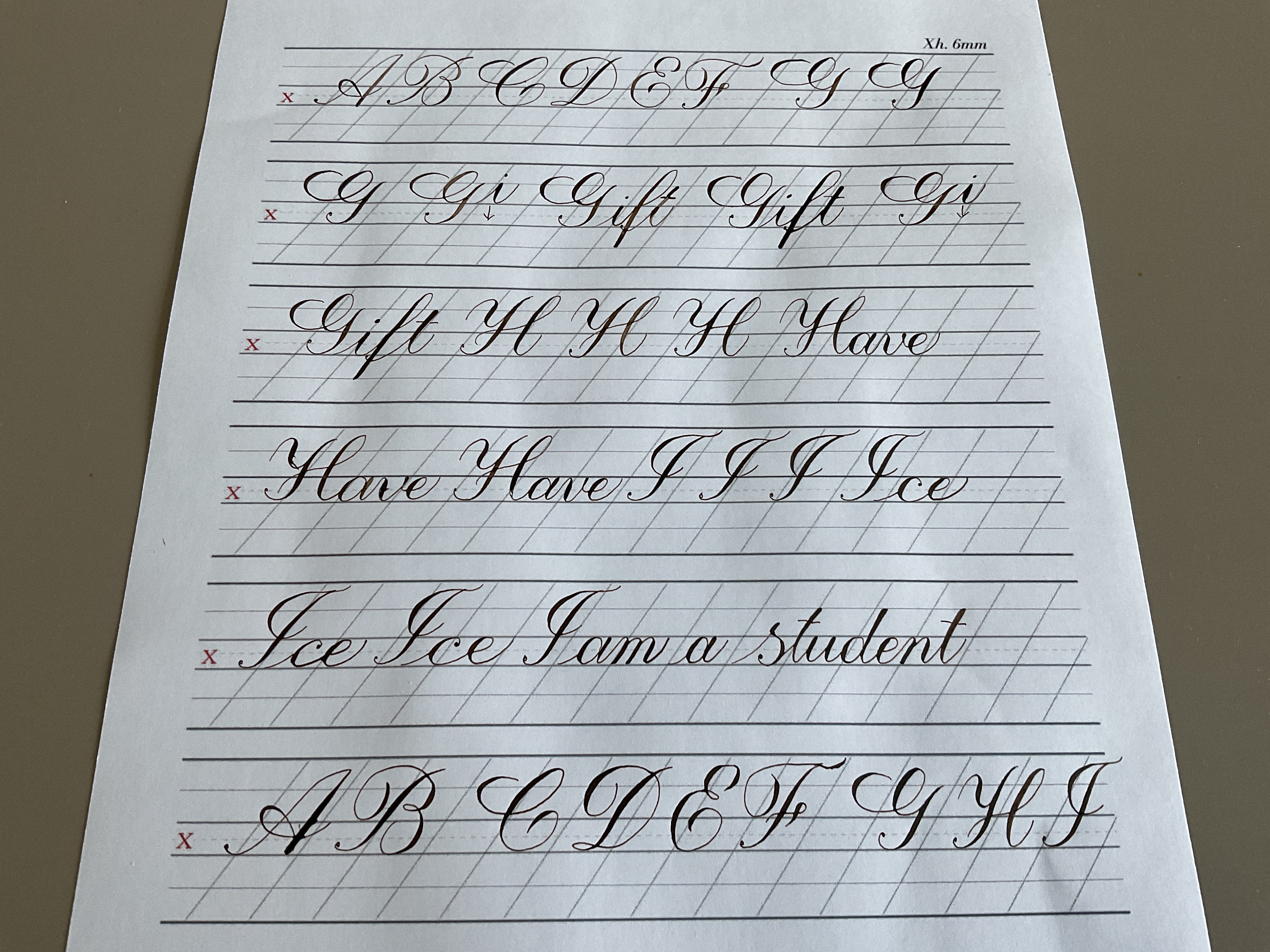 오늘 새로 연습한 G, H, I는 그렇게 어렵지는 않았는데 다만 G의 모양이 소문자처럼 생겨서 단어를 쓰는 위치가 헷갈렸다. 그래서 두 번이나 실수를 했다 ㅜㅜ 마지막으로 A부터 I까지 한번씩 쭉 이어서 써 보았는데 특히 E, F의 모양과 각도가 불안정하게 느껴져서 마음에 들지 않았다. 포기하지 않고 계속 연습을 하면 언젠간 모든 알파벳을 예쁘게 쓸 수 있을 것이다.