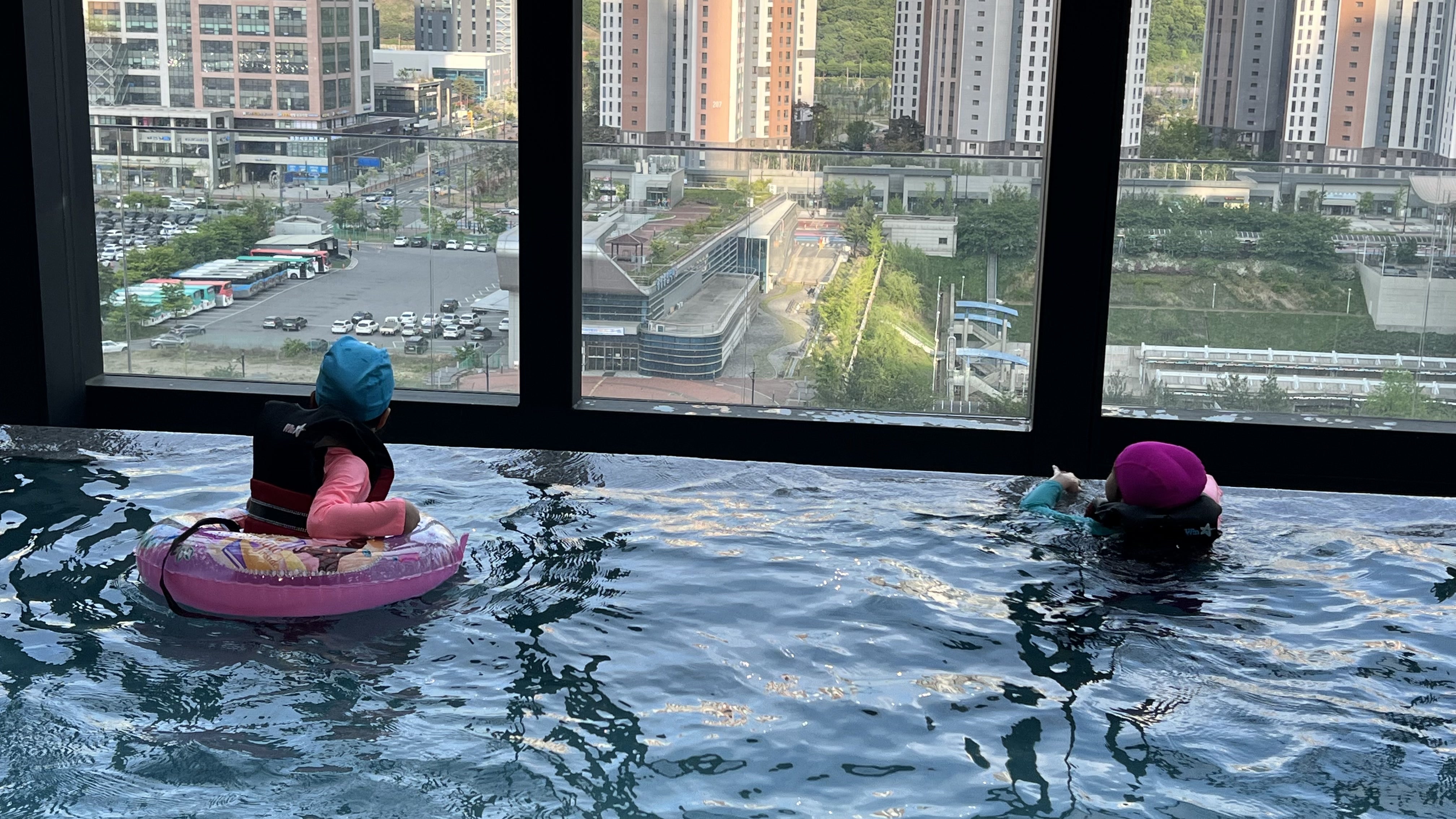 호캉스를 하며 아이들이 가장 기대했던 것이 바로 인피니티풀 수영장이었다. 아마도 물놀이를 싫어하는 아이들은 없을 테니까... 입실하는 순간부터 수영장에 언제 가냐며 노래를 불렀다.