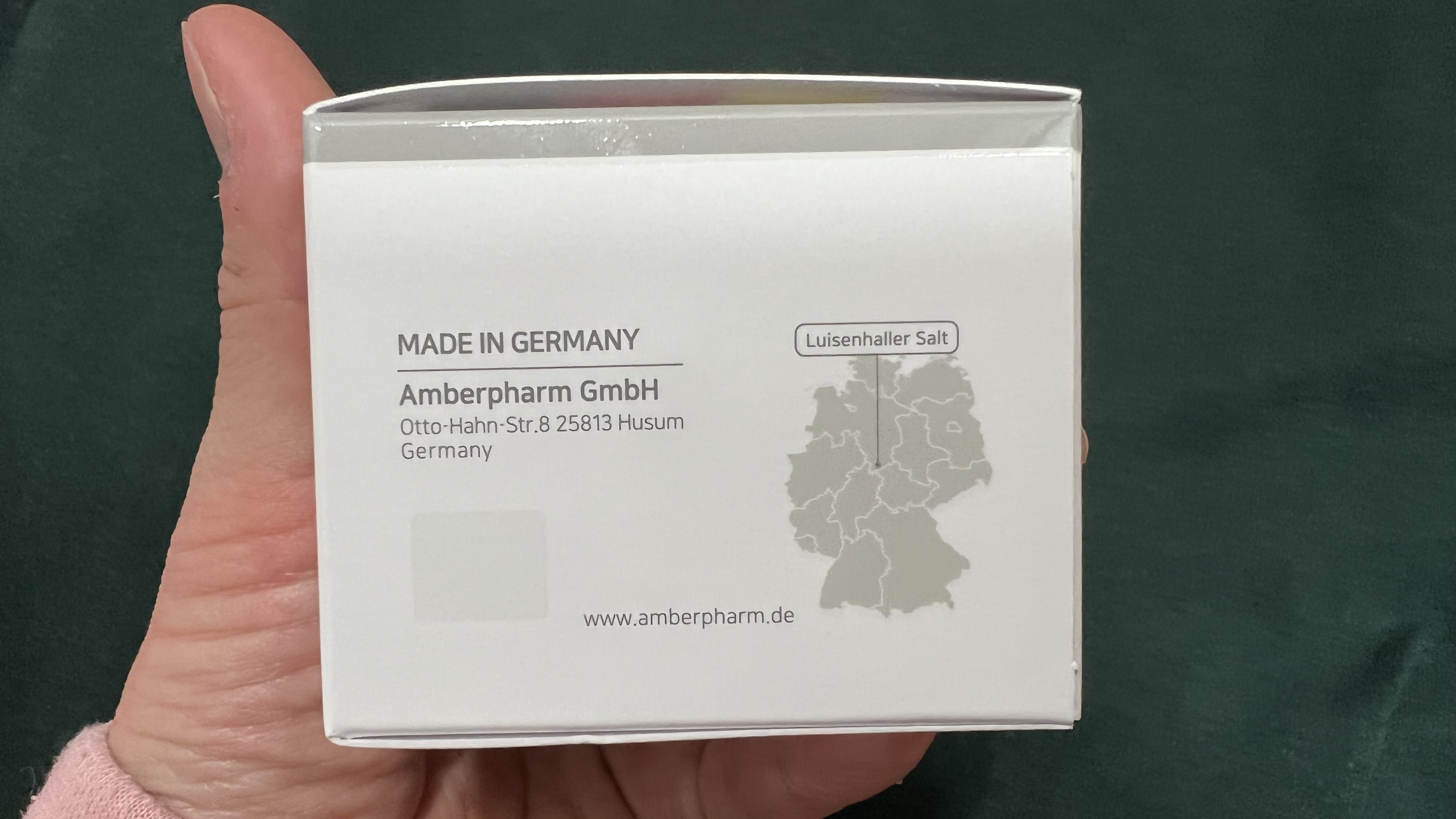 박스를 열면 설명서와 스파츌러가 함께 들어있다. 암버팜 솔트크림에는 루이젠할 솔트, 스쿠알란, 호호바씨 오일, 우레아 등의 성분이 함유되어 있다. 그 중에서도 가장 눈여겨 볼만한 성분은 루이젠할 솔트이다. 약 2억 5천만년 전 동안 오염되지 않은 원시 자연 그대로의 청정지역, 원시바다의 생명력을 품고 있는 심층 염천수의 소금을 사용하는데, 일반 바다의 염분은 6%인 반면에 루이젠할 염천수는 27%의 고농도로 피부의 유해한 환경으로부터 피부를 보호하는 바이오막 역할을 한다. 암버팜 솔트크림에는 8%의 루이젠할 솔트가 들어있어 깊은 보습감을 느낄 수 있는 것이다.