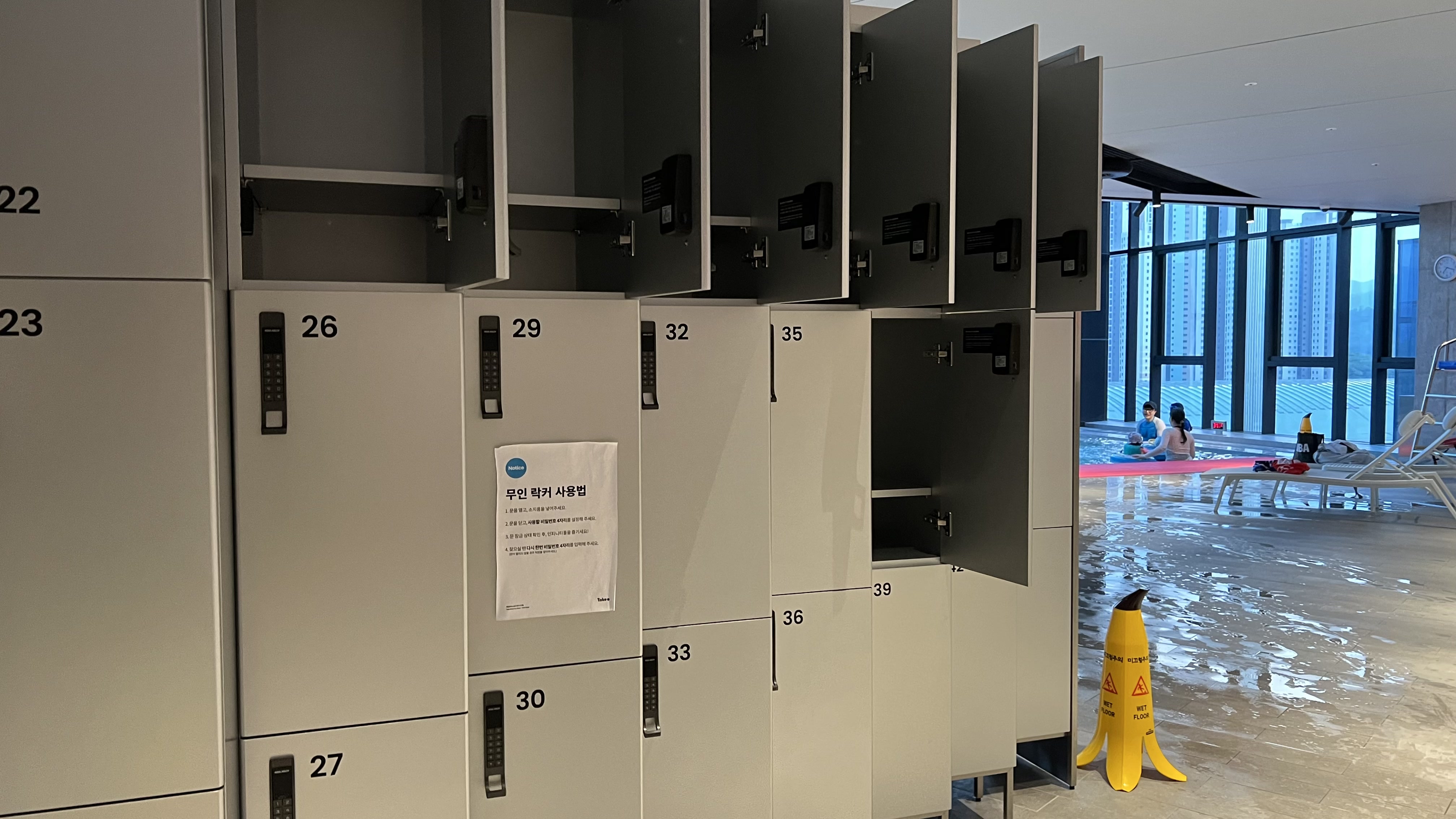 먼저 무인 락커에 가져온 물품 - 슬리퍼, 수건 등을 보관한다.