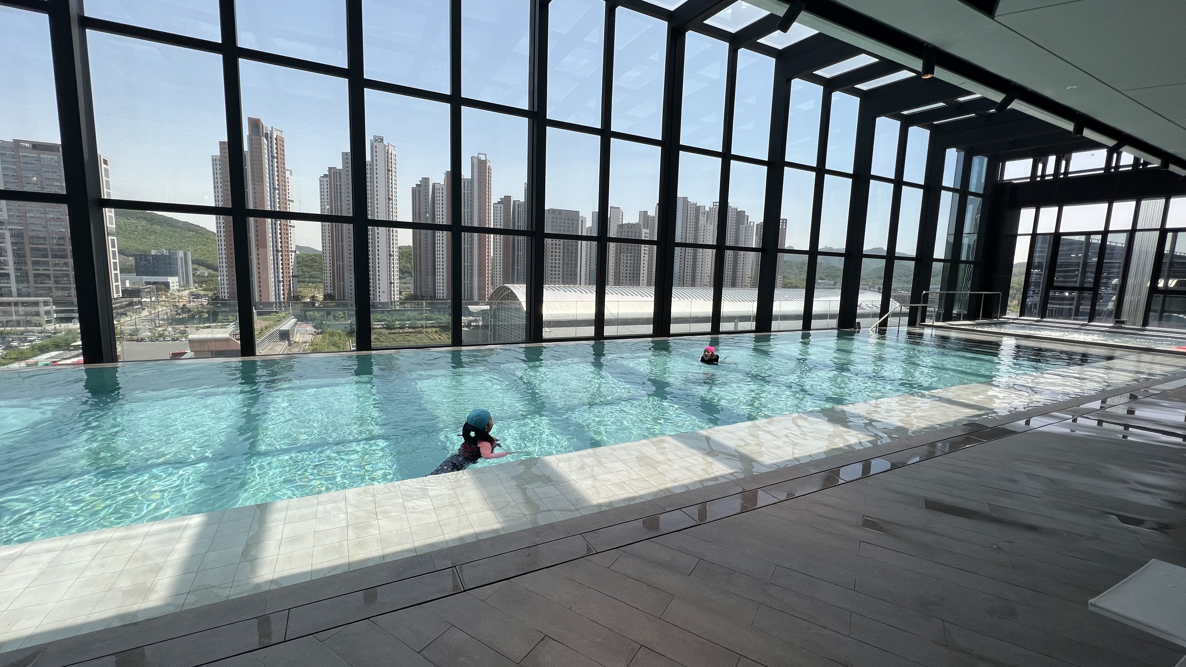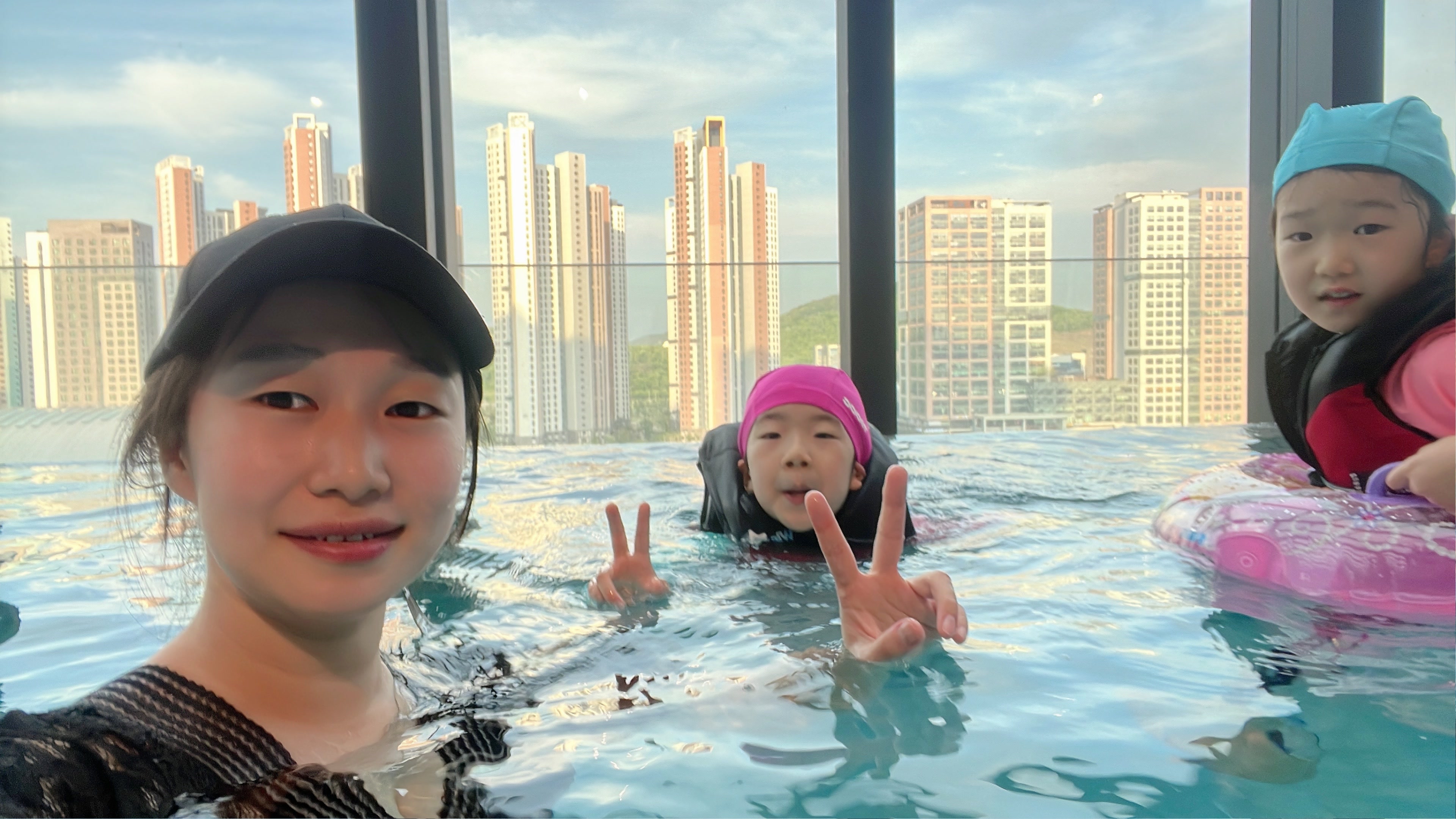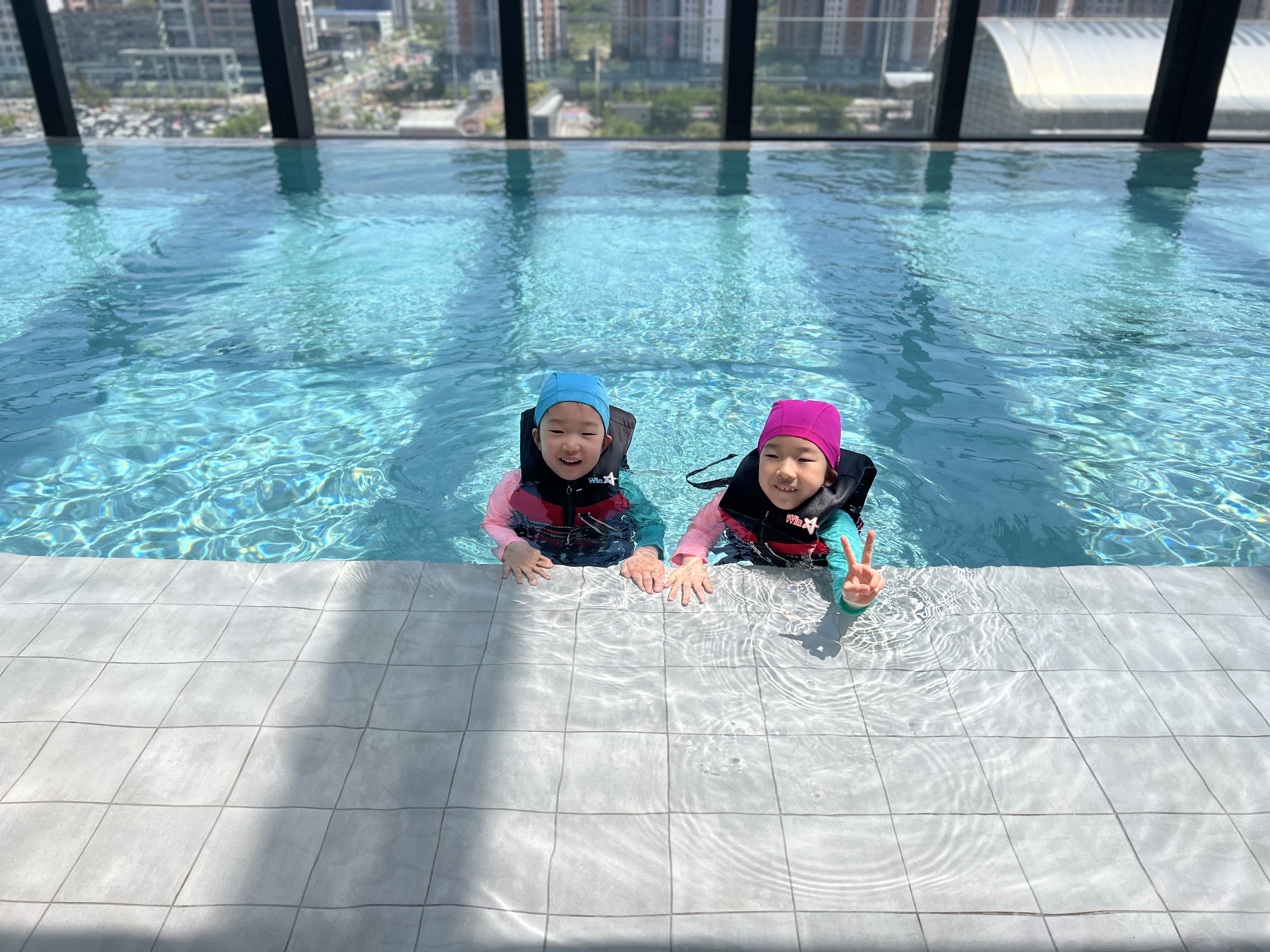 호캉스를 하며 아이들이 가장 기대했던 것이 바로 인피니티풀 수영장이었다. 아마도 물놀이를 싫어하는 아이들은 없을 테니까... 입실하는 순간부터 수영장에 언제 가냐며 노래를 불렀다.
