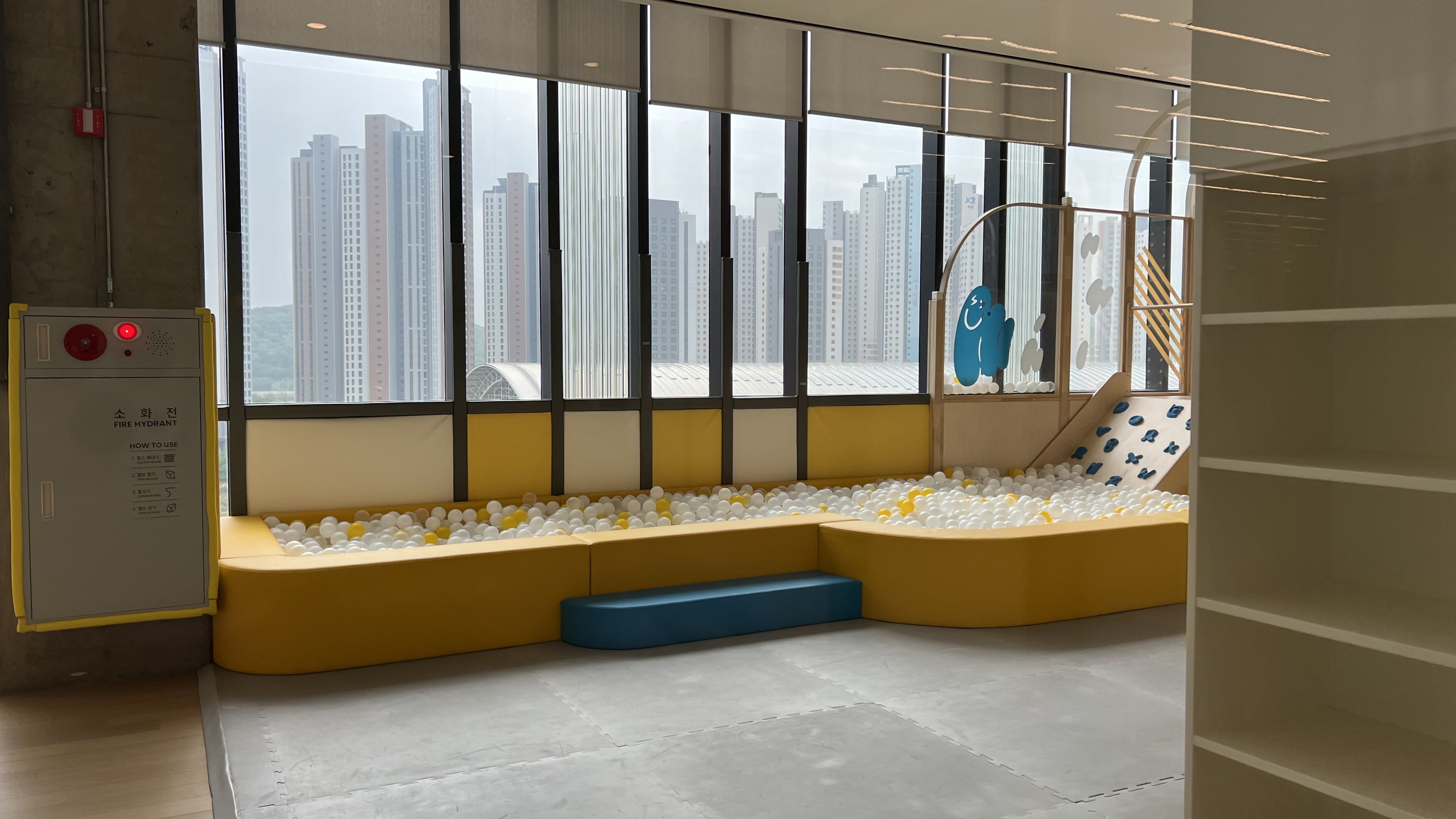 키즈룸도 우리가 방문했을 때에는 운영시간이 아니어서 그냥 구경만 했다. 근데 운영중이었어도 우리 아이들 수준에는 맞지 않았을 것 같긴 하다. 이 곳은 아주 어린 아이들이 놀기에 적합하다는 생각이 들었다. 키즈룸은 전화예약은 불가하고 현장접수만 가능한데 운영시간은 오전 10시부터 오후 7시까지이다. 매주 화요일과 수요일은 휴장이며 만 9세까지만 이용이 가능하다고 한다. (만 18개월 이하 어린이는 보호자 동반 필수)