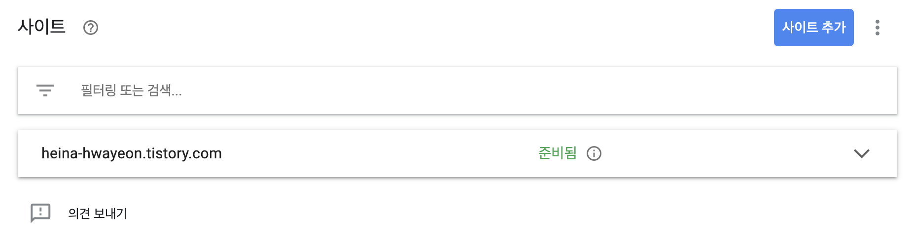 먼저 구글 애드센스 웹사이트(www.google.com/adsense)에 방문하여 좌측의 '사이트' 카테고리로 이동한다. 내가 승인받은 사이트 도메인 리스트를 확인할 수 있다. 우측 상단에 파란색 '사이트 추가' 버튼을 클릭하자.