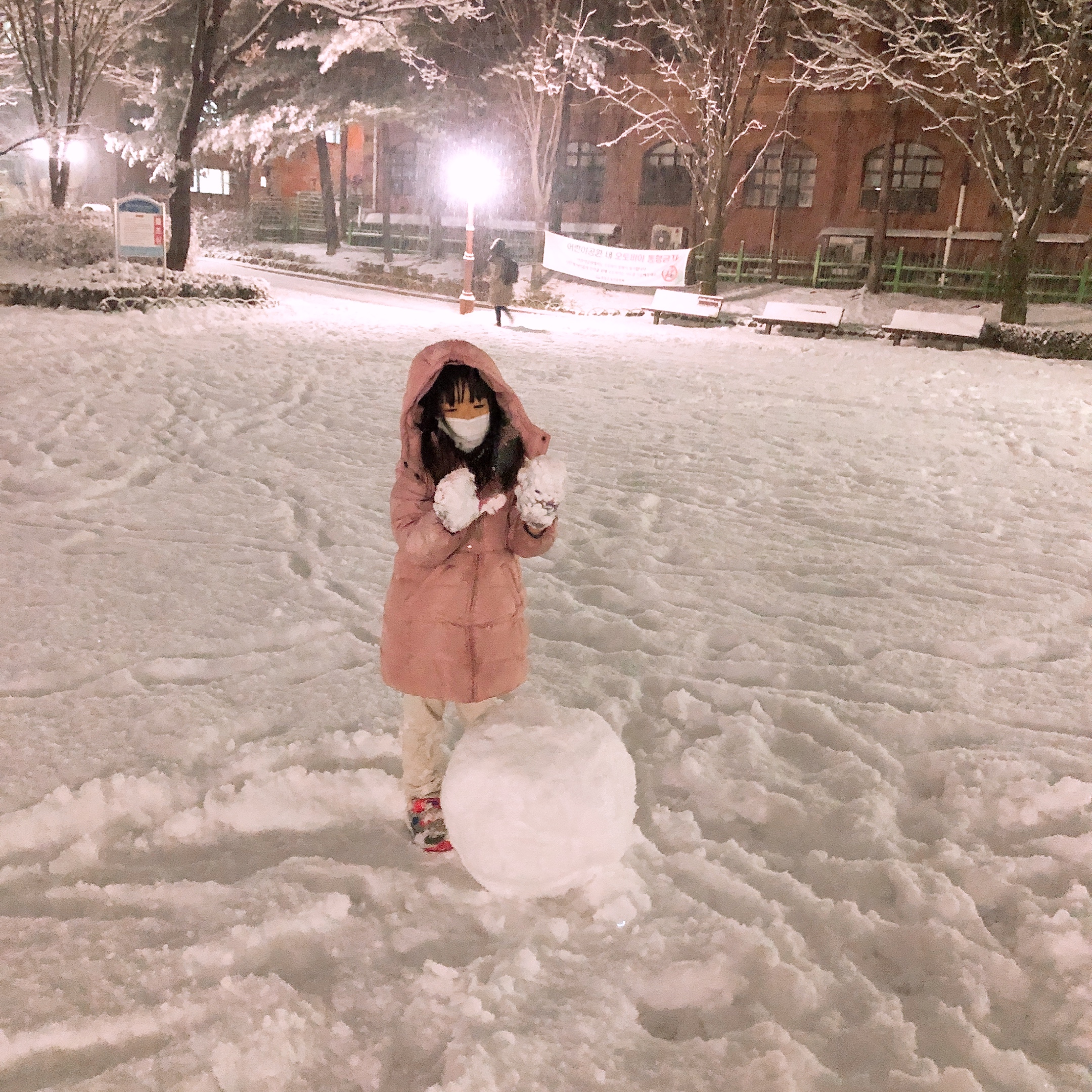 처음에는 주먹만했던 작은 눈덩이가 커지니 신이 난 아이들은 정말 열정적으로 눈밭을 뛰어다녔다. 공원에 우리밖에 없을거라 생각했는데 다들 아이들과 눈 구경을 나와 즐거운 시간을 보내고 있었다. 코로나19 사회적 거리두기로 누군가를 만날 기회도 웃을 일들도 별로 없는 요즘, 공원에 삼삼오오 나온 사람들이 모두 같은 기분일 거라 생각하니 오랜만에 마음이 따뜻해졌다.