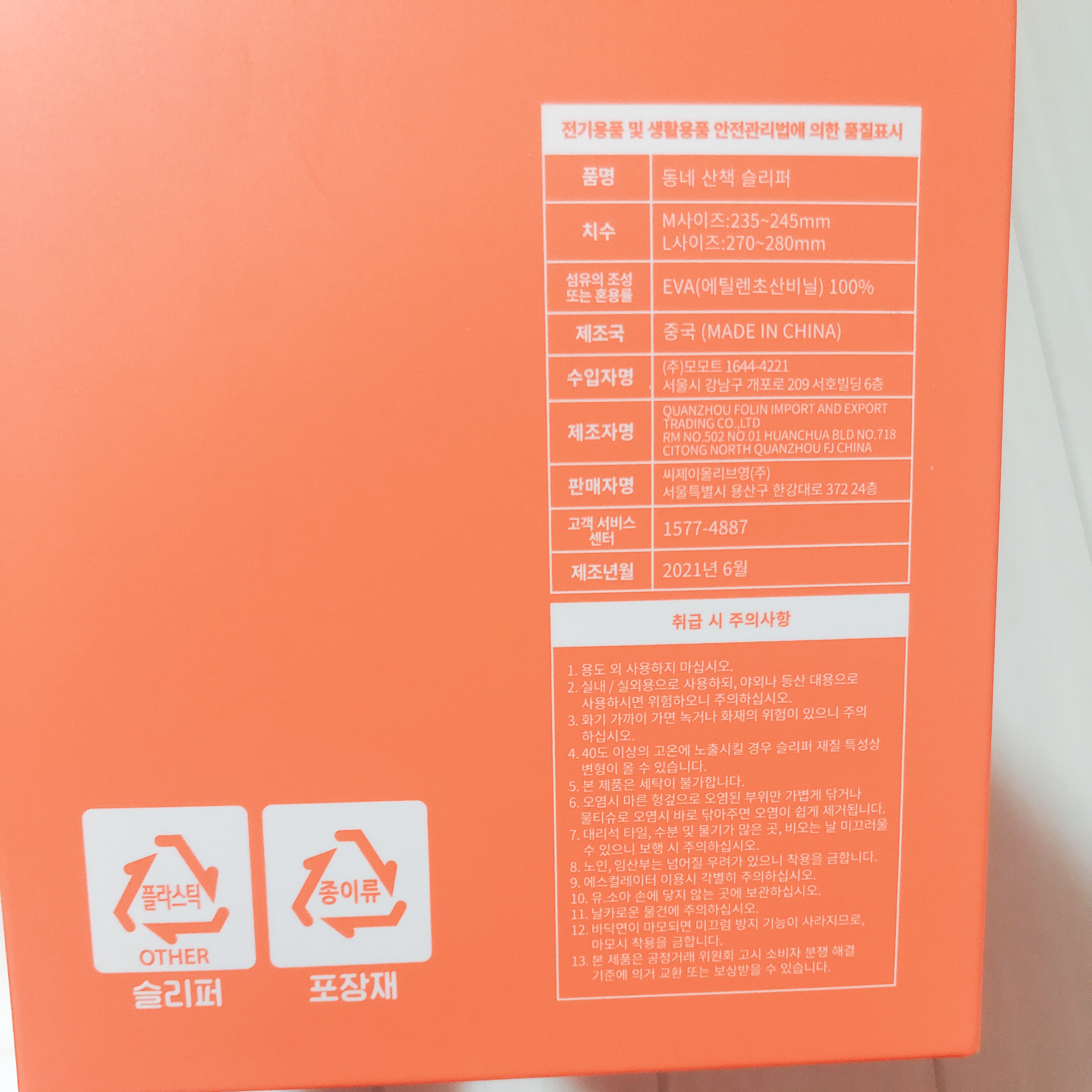 동네산책굿즈 슬리퍼의 첫인상은 ‘가볍다’ 였다. 소재는 EVA 100%라고 하는데 정말 슬리퍼를 신은 듯 안 신은 듯 가벼웠다. 착화감이 엄청 좋은 편은 아니었지만 그럭저럭 신고 다닐 수 있는 수준이다.
