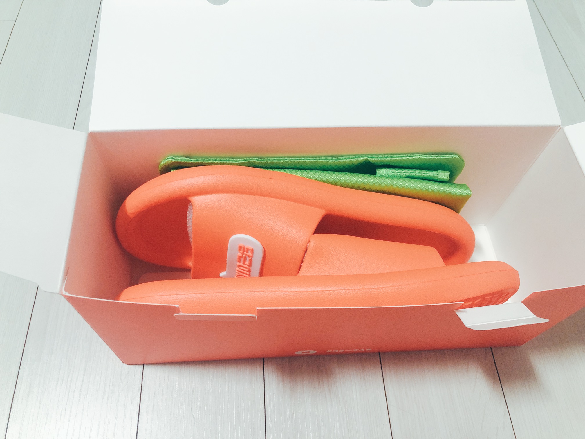 다음으로 슬리퍼를 구경할 차례! 슬리퍼는 사이즈가 M 사이즈와 L 사이즈로 구분되어 있는데, M 사이즈는 235~245mm 이고 L 사이즈는 270~280mm이다. 나는 발이 작은 편이어서 M 사이즈를 선택했다.
