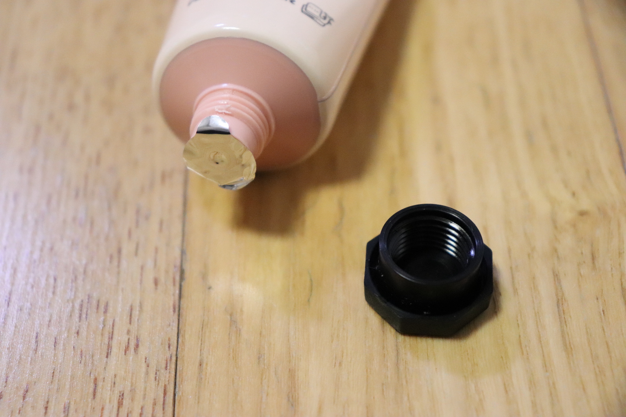 튜브형 용기 타입으로 까만 뚜껑을 돌려서 열면 얇은 커버가 한장 더 씌워져 있다. 떼어내고 사용하면 된다.