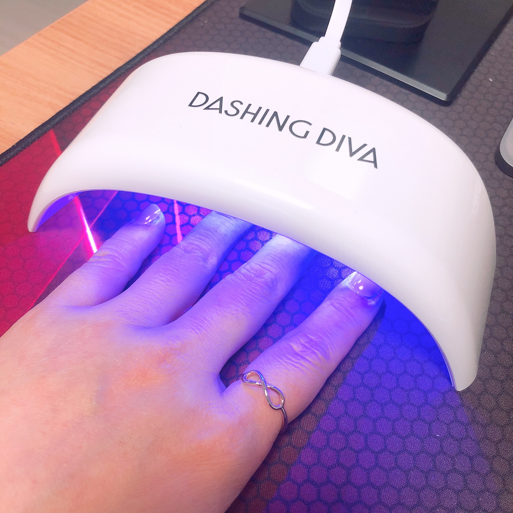 부착이 모두 끝났다면 데싱디바 LED 램프를 이용하여 경화를 해 준다. 데싱디바 LED 돔타입 램프는 빛이 새어나가지도 않을 뿐더러 손을 넣기만 하면 자동인식으로 45초간 작동되니 사용하기에도 편리하고 정말 마음에 든다.