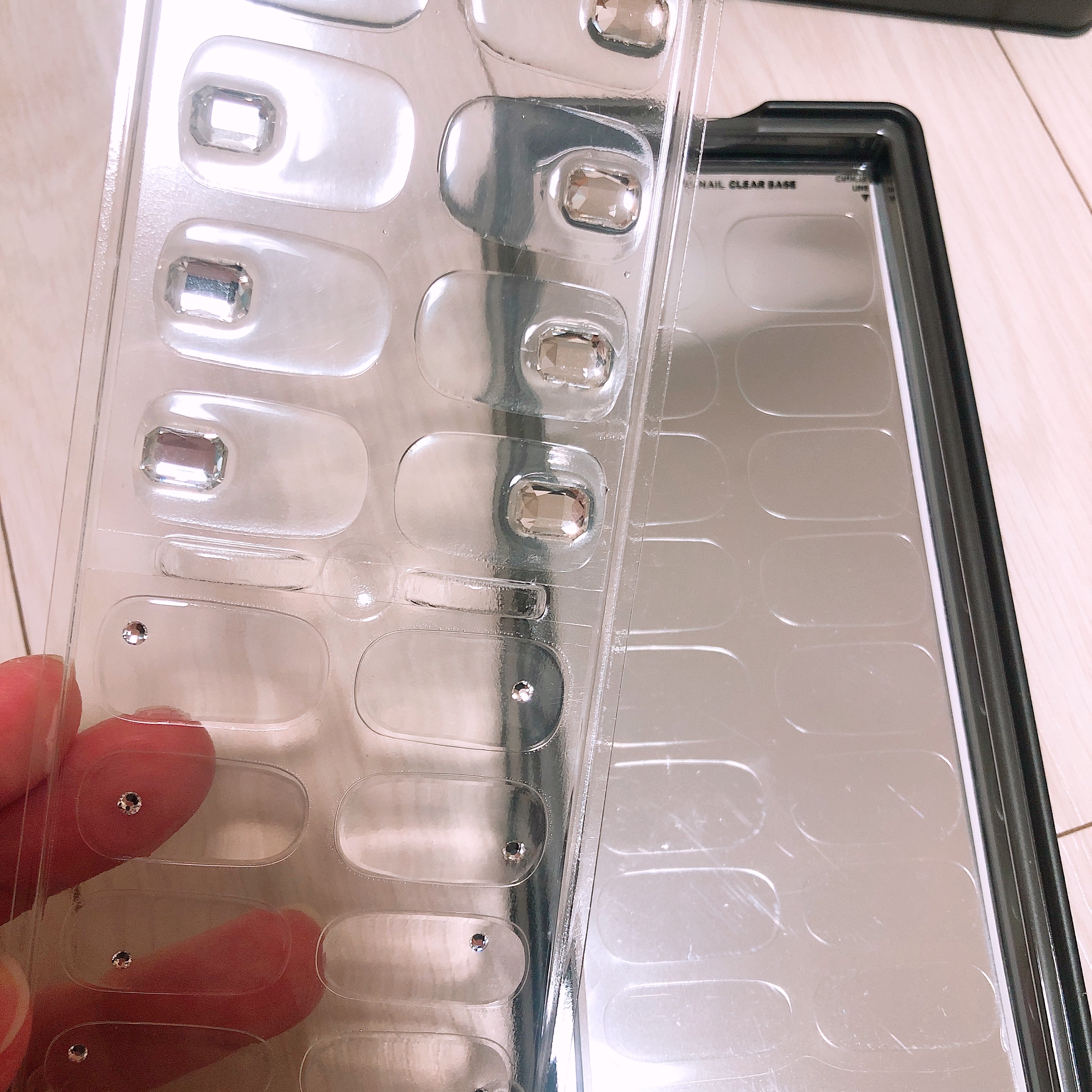 그리고 샤인 위 아는 투명한 젤네일로 기본 중의 기본이다. 스퀘어 타입의 빅 스톤과 스몰 스톤이 조화롭게 어우러져 어떤 컬러와 디자인에도 도 믹스매치가 가능하다는 장점이 있다. 집에 사용하고 남은 네일팁을 활용하고 싶은데, 사이즈가 애매하여 열 손가락 모두 붙일 수가 없다? 그럴 때 그냥 샤인 위 아를 함께 사용하면 된다.