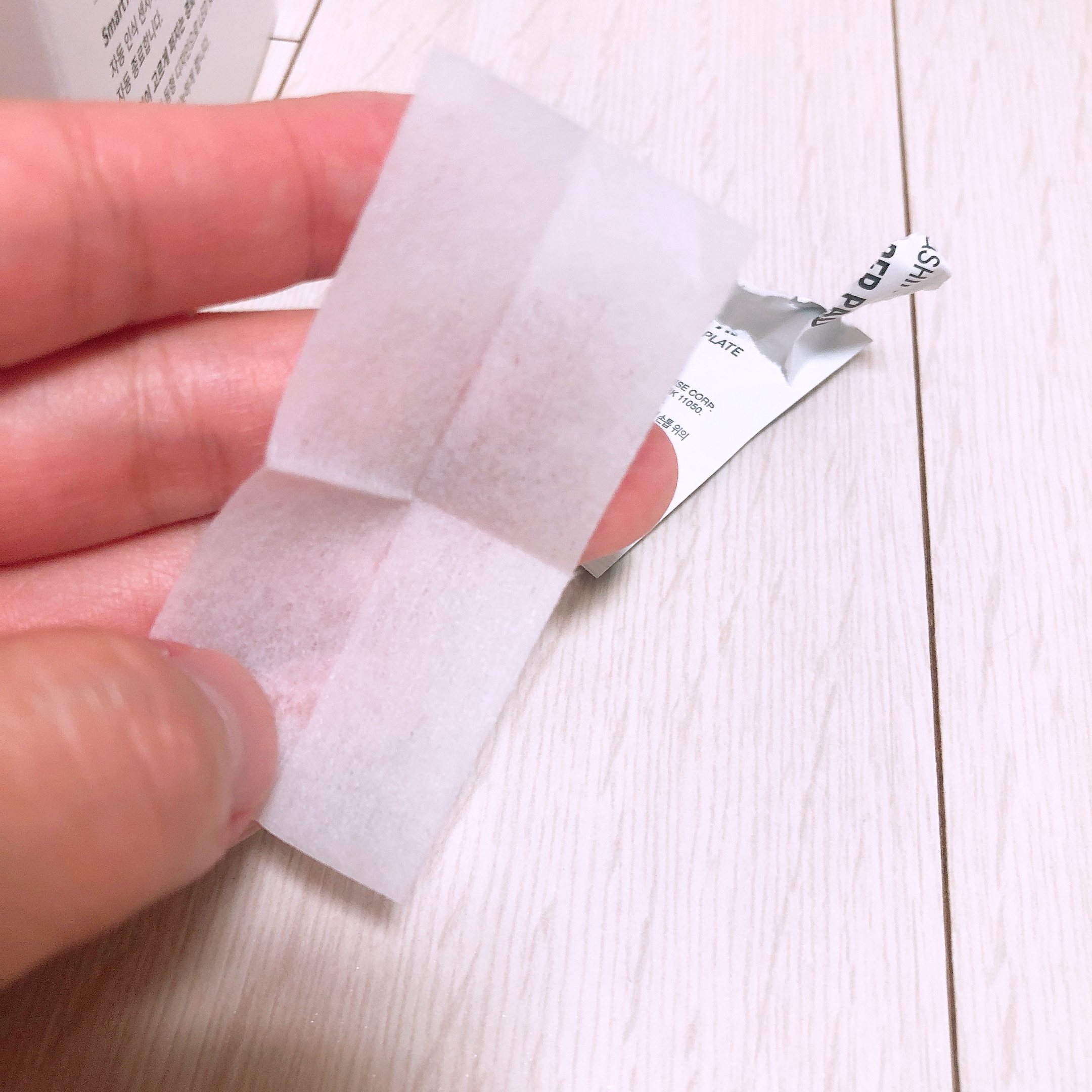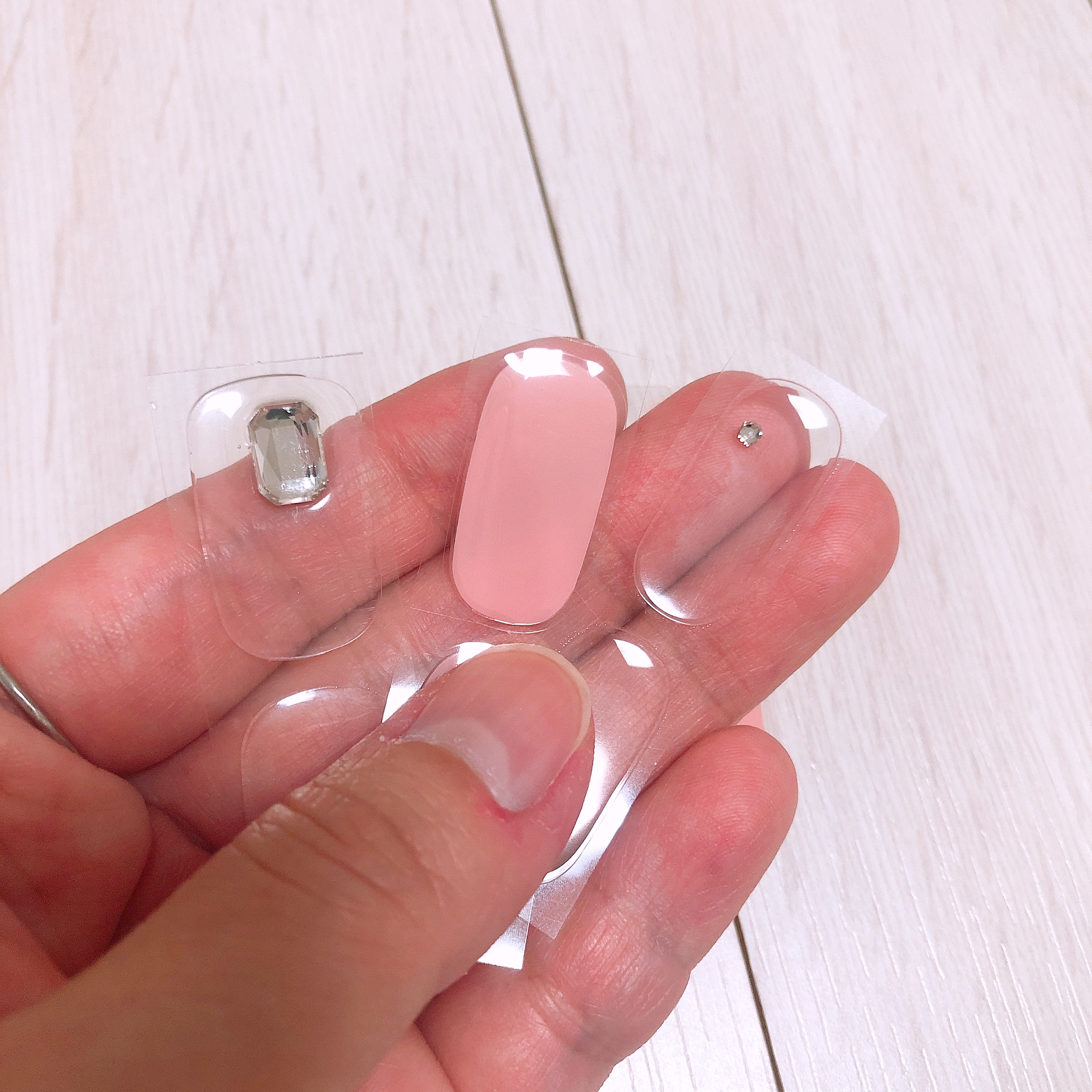 프랩패드로 손톱의 유수분을 모두 제거하고 새끼손가락부터 차례대로 젤네일 스트립을 붙여 주었다.