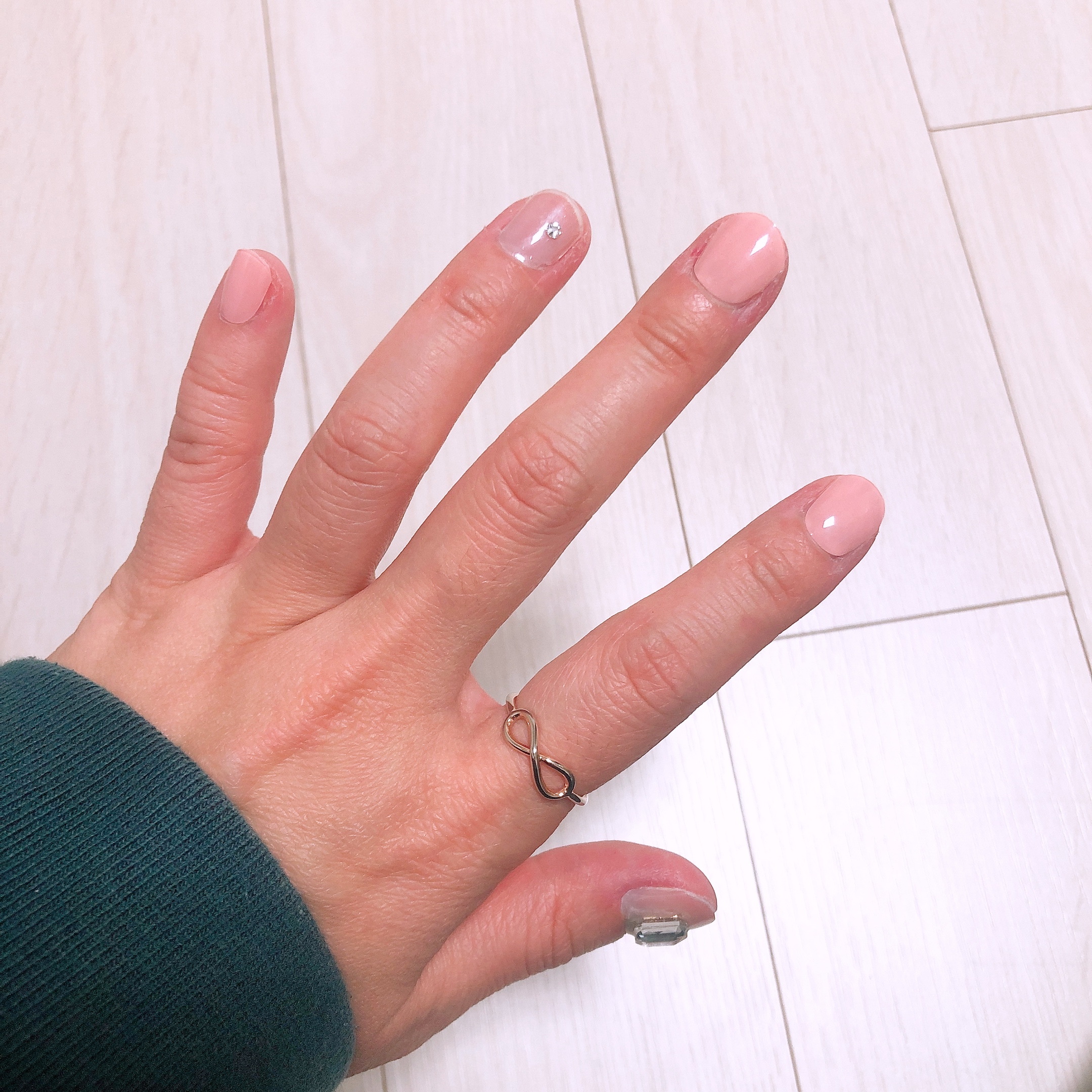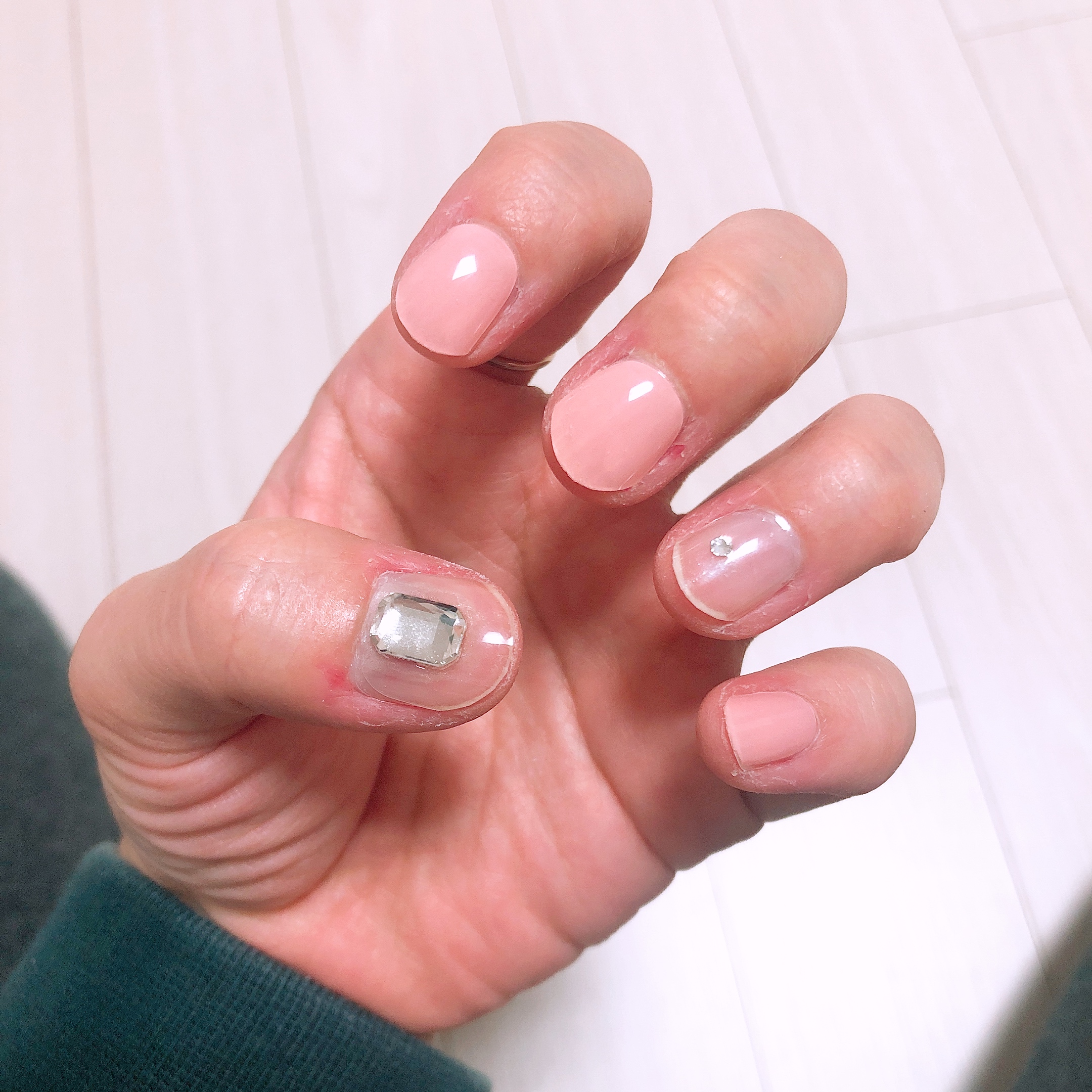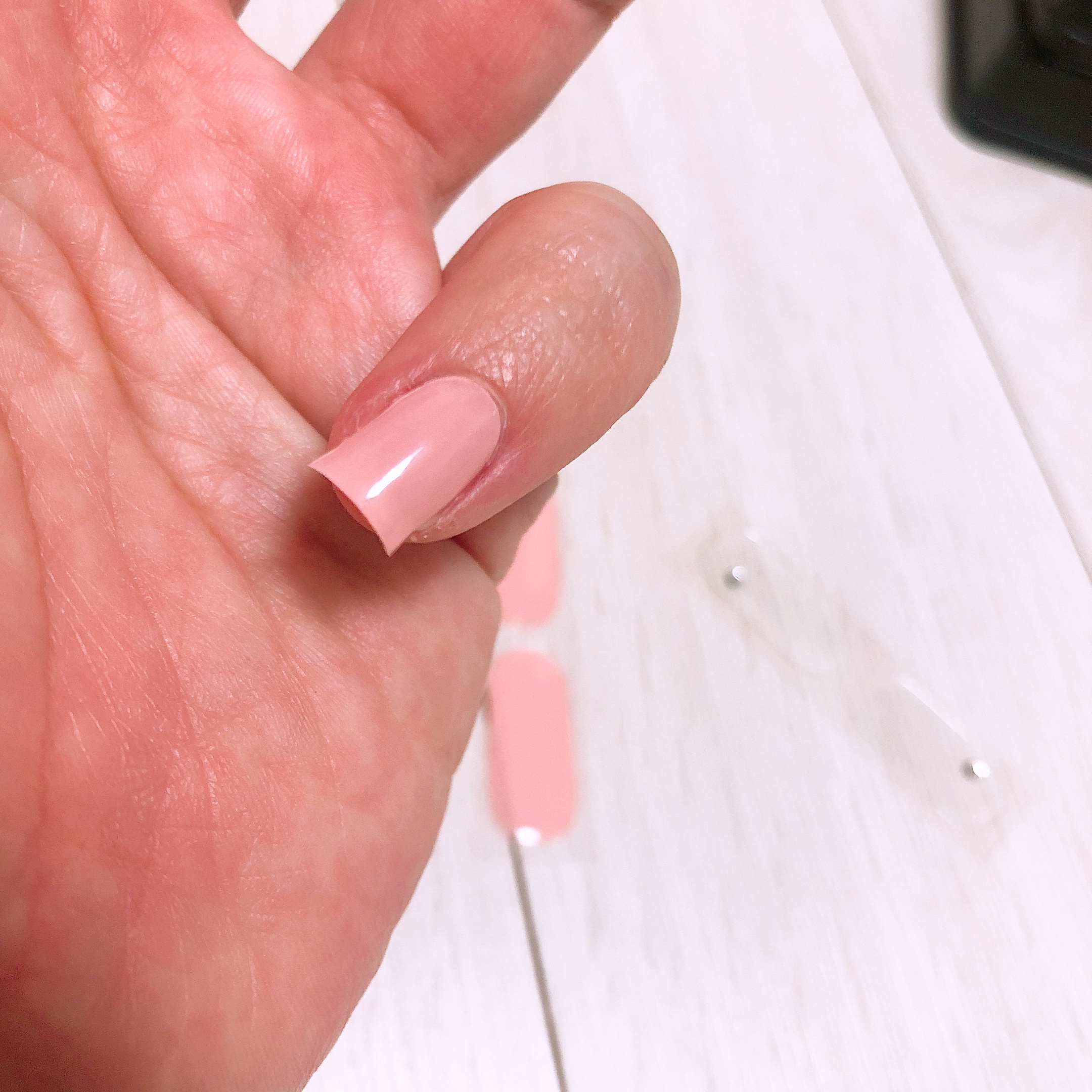 경화 후에 네일파일을 이용하여 한번 더 정리를 해 줄 예정이므로 지금은 끝이 매끄럽지 않아도 된다. 적당히 손톱깎이로 길이만 맞추어 잘랐다. 투명한 샤인 위 아 스트립은 피치 베일과 정말 찰떡같이 잘 어울렸다. 이거 한 다섯개 정도 사가지고 쟁여놔야 할 것 같다-_-;