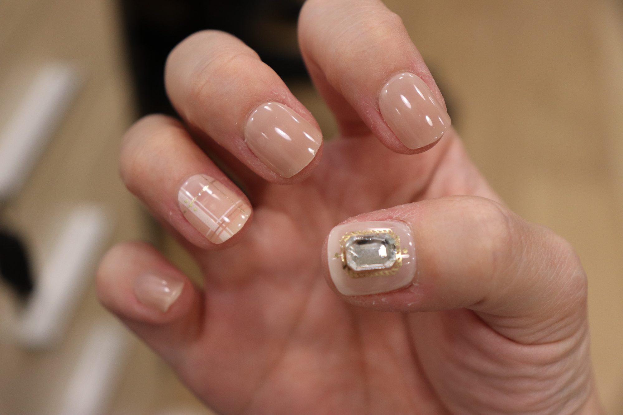 데싱디바 공식몰 설명을 살펴보면, 러블리한 로즈 크리스탈과 클리어한 빅스톤이 시스루 체크를 만나 심플한 느낌의 데일리 네일이라고 한다. 확실히 화려함과 차분함이 공존하는 디자인으로 사계절 내내 무난하게 부착할 수 있는 제품이라는 생각이 들었다.