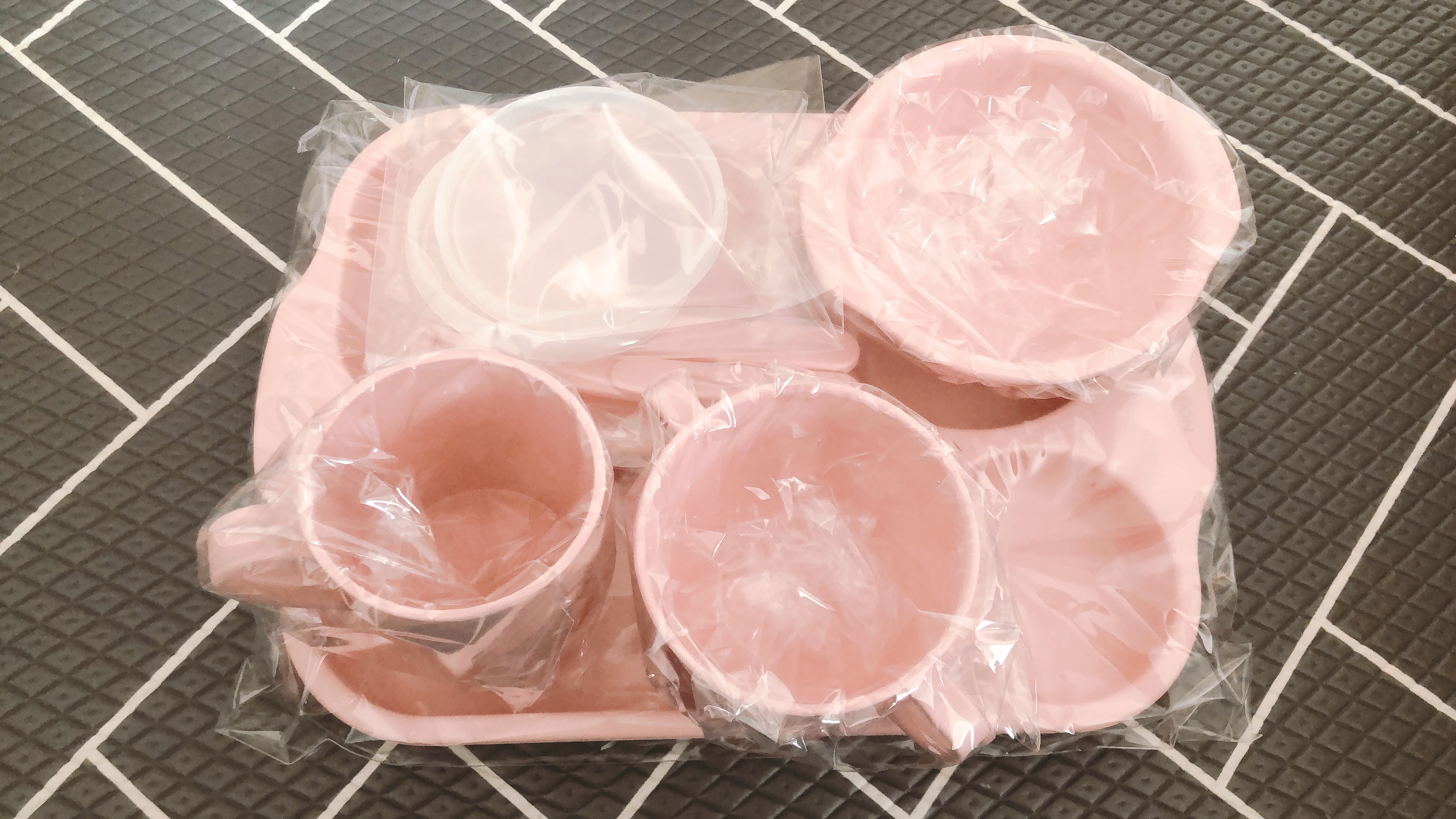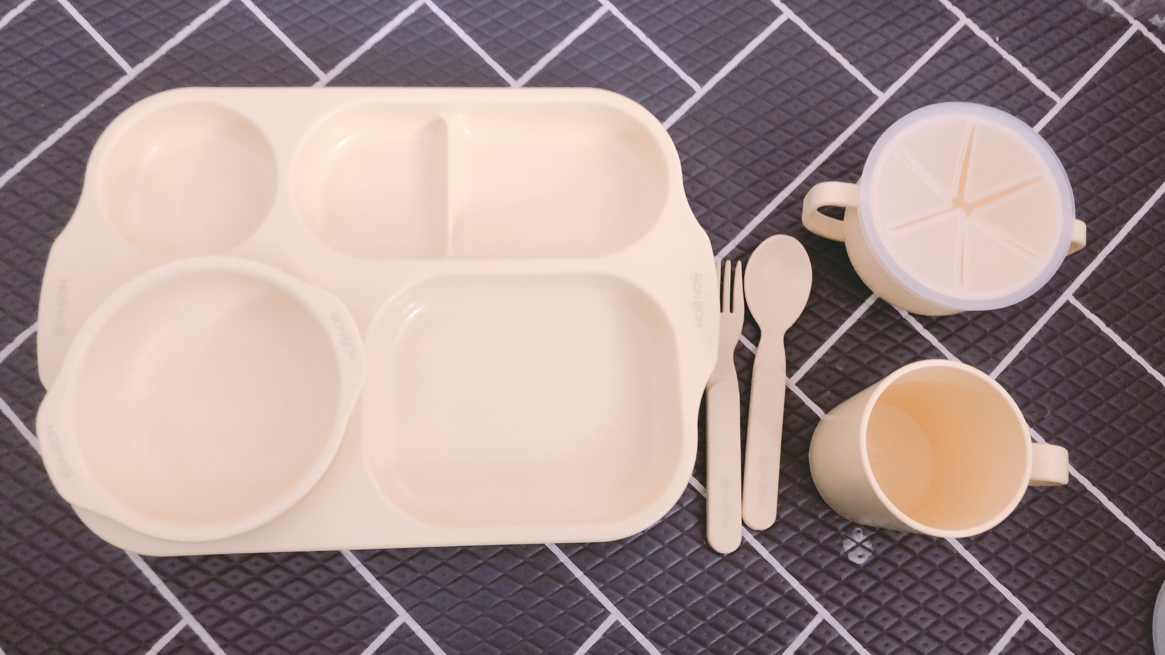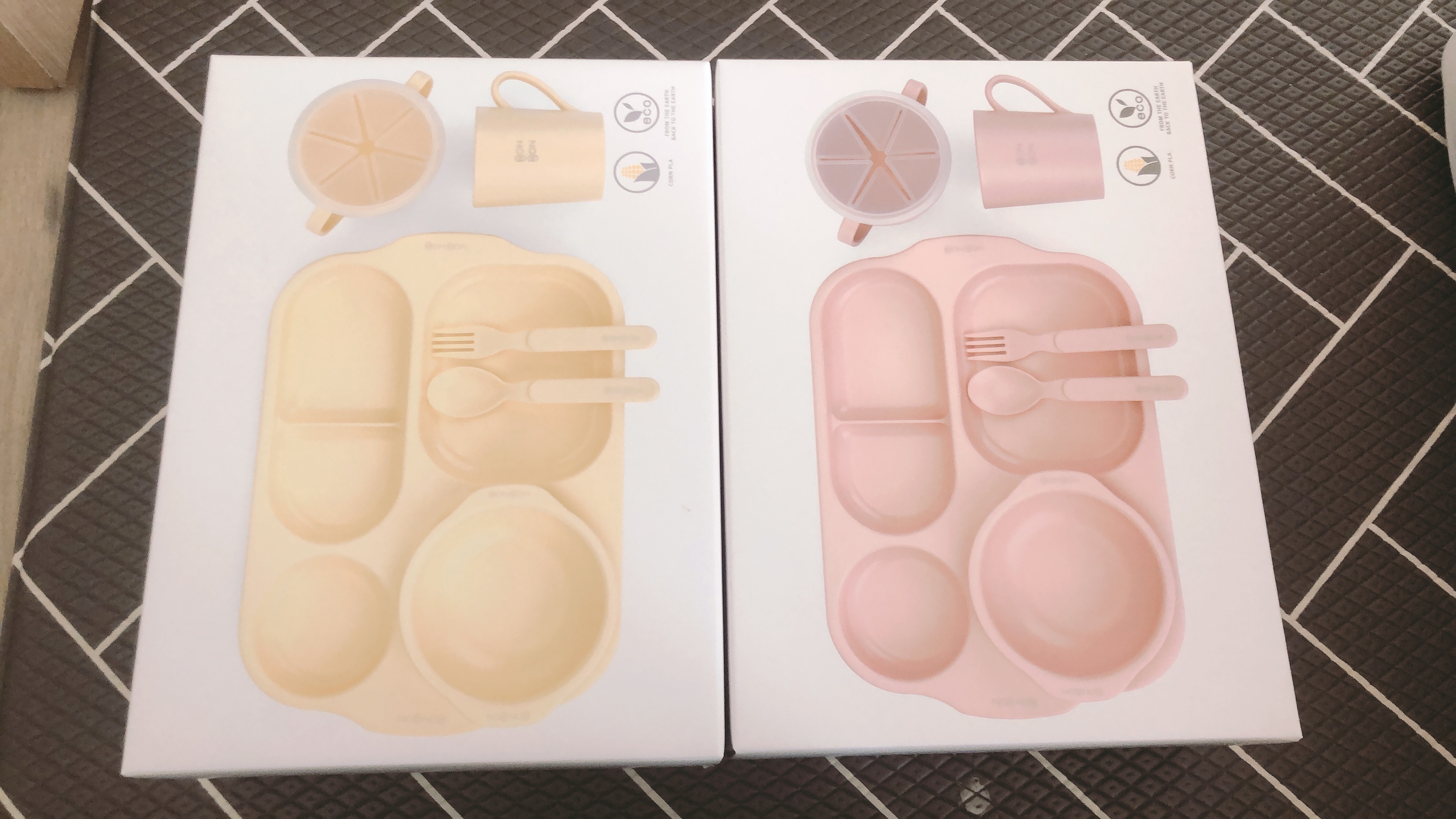 인터넷에 유아식판이라고 검색하면 정말 다양한 제품들이 많이 나오는데 그 중에서도 나를 사로잡은 제품은 데일리라이크의 봉봉 옥수수 식기였다. 식판, 수저, 컵 구성의 3종 세트와 거기에 양손볼(+캡,스낵캡)과 이유식볼을 더한 5종 세트 옵션으로 구매 가능하다. 나는 5종 세트의 활용도가 더 높을 것 같아서 5종을 선택했다.