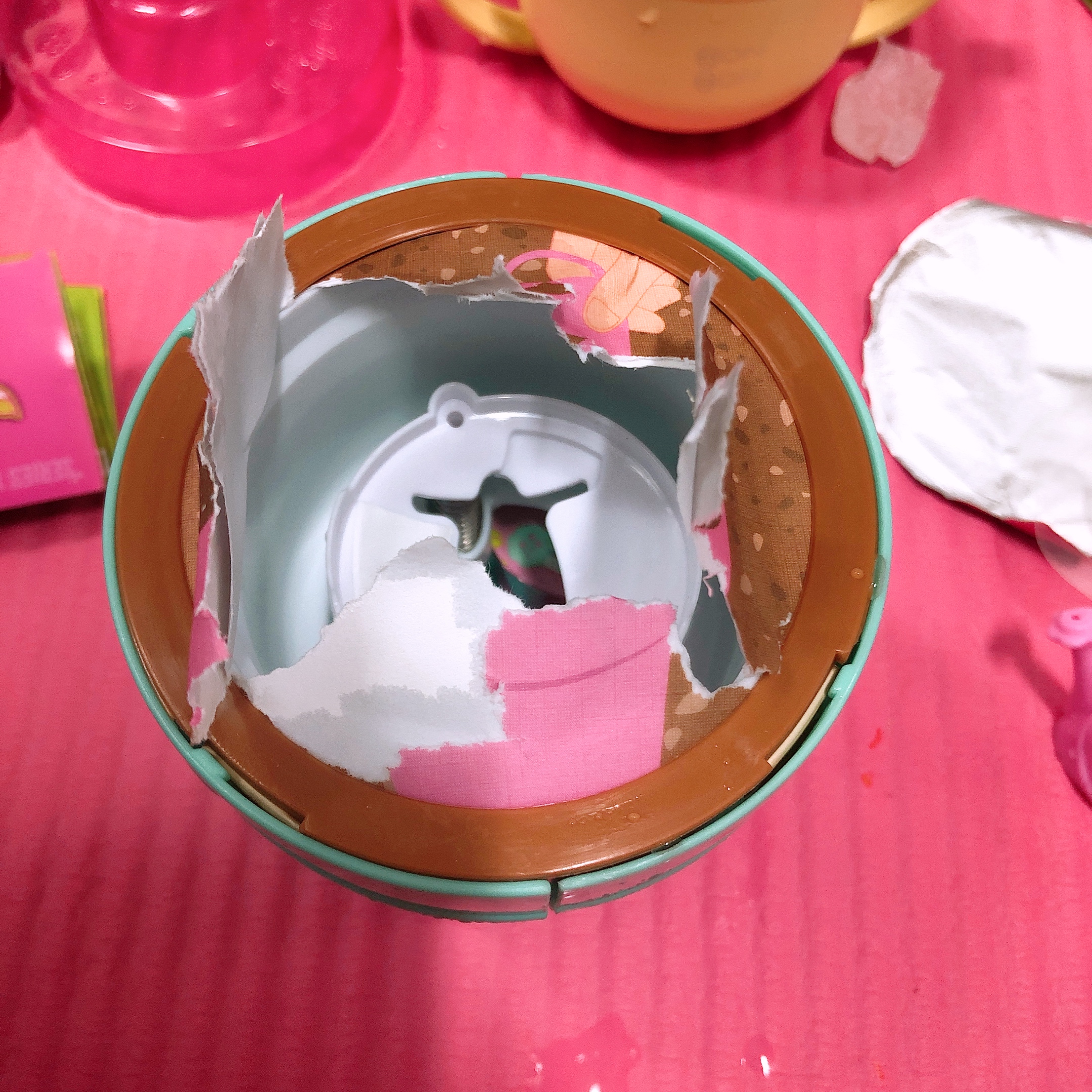 화분 위에 물을 뿌리고 나서 잠시 기다리면 종이가 찢어지며 머리가 올라온다. 첫째 하요미는 신기했는지 "엄마 어떻게 머리가 올라왔지?" 라고 몇 번이나 물어 보았다. 하지만 물어봐도 엄마도 몰라 ㅜㅜ