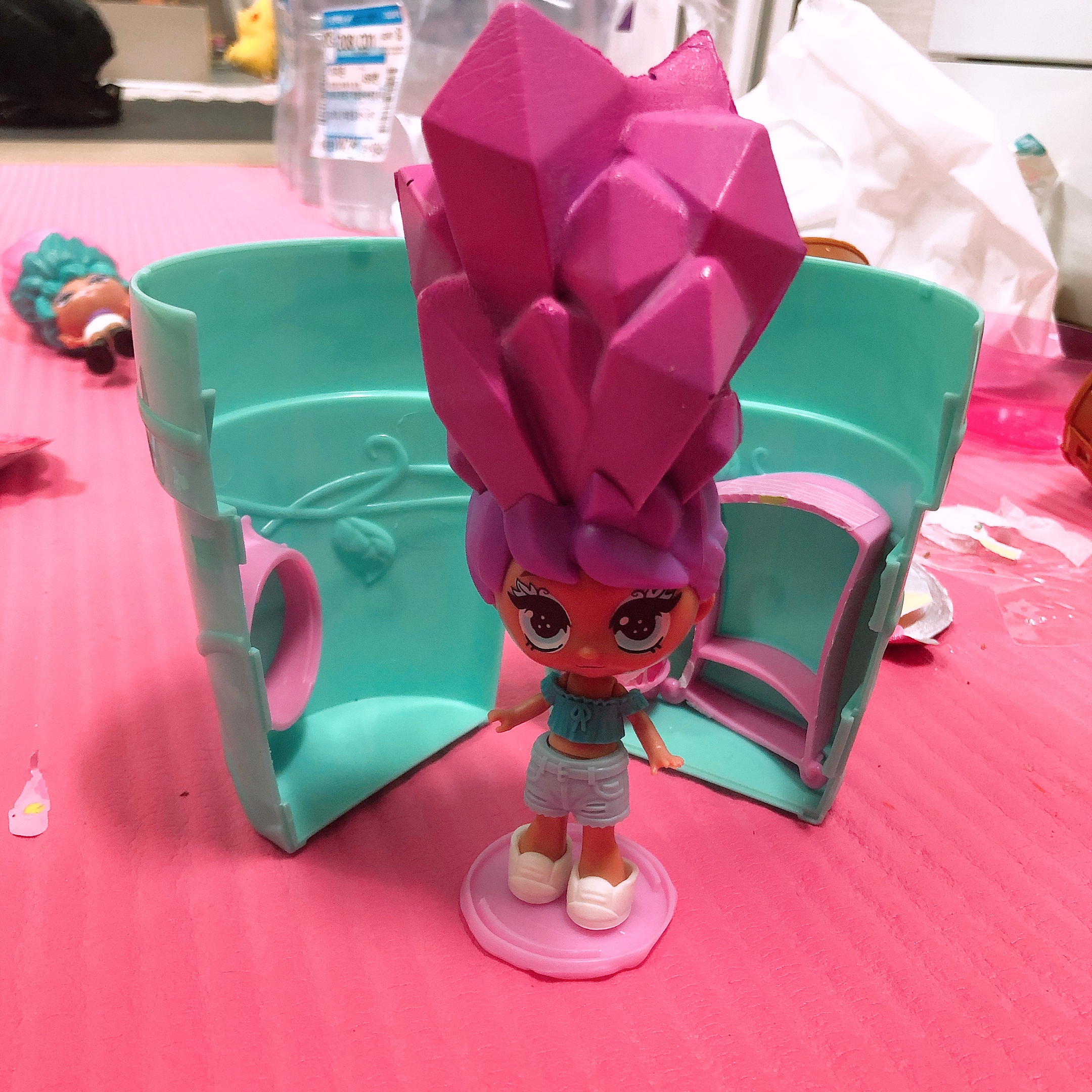머리를 손으로 잡고 빼면 요정같이 귀여운 캐릭터가 튀어 나온다. 얼굴과 몸통, 팔, 다리는 바비인형처럼 약간 딱딱한 촉감이며, 풍성한 헤어는 스펀지 재질로 푹신해서 만지는 재미가 있다.