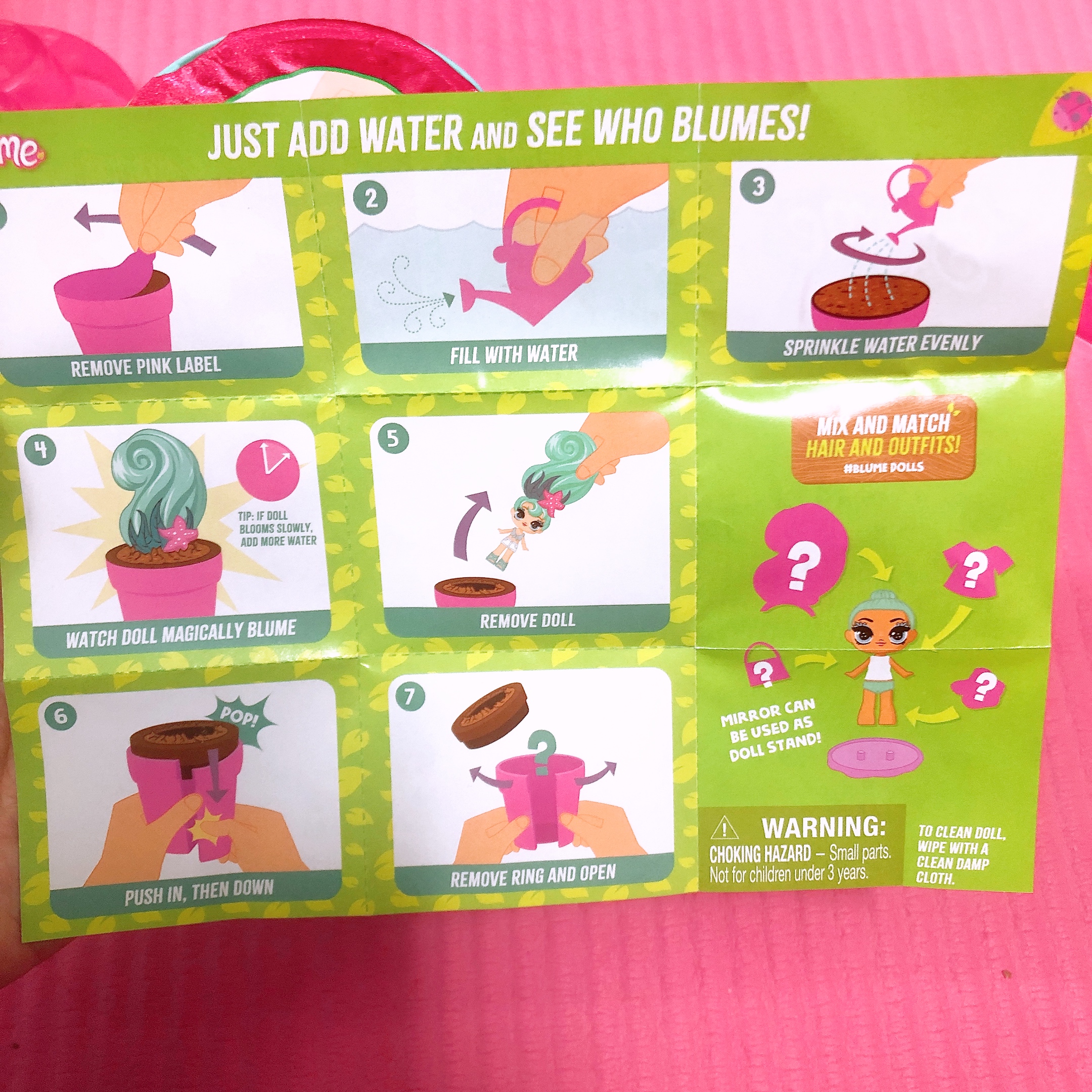 설명서의 한쪽 면에는 블룸돌즈를 여는 방법이 일러스트와 함께 자세하게 설명되어 있었다. 영어 문장으로 되어 있지만 일러스트만으로도 과정을 충분히 이해할 수 있다.