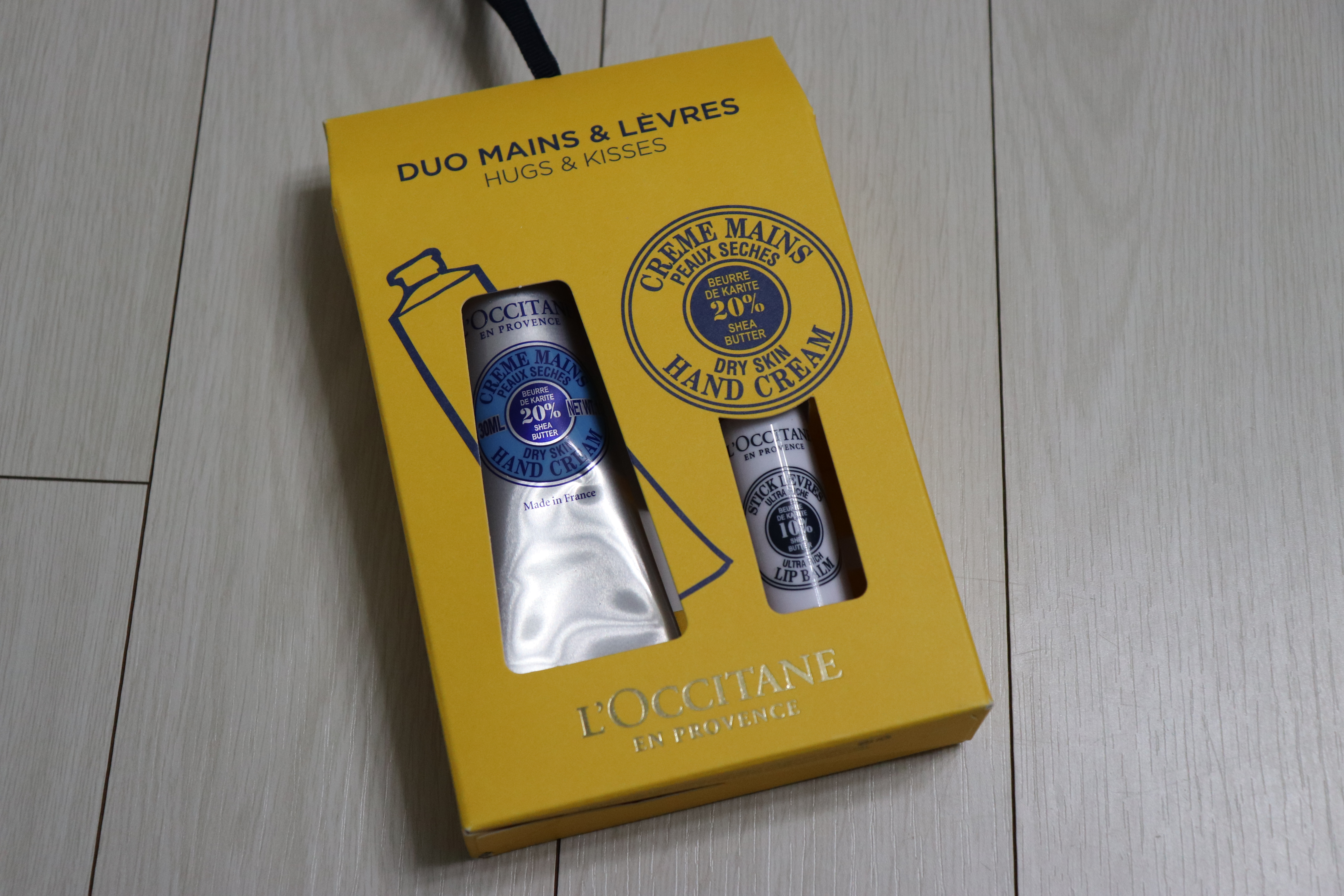 이번 겨울도 힘내라는 의미에서 내가 나에게 주는 선물 - 건조한 손등과 입술을 보호하기 위한 록시땅 핸드크림과 립세트를 구입했다. 시어 드라이 스킨 핸드 크림 30ml와 시어 버터 립 밤 스틱 4.5g 구성의 패키지이다.