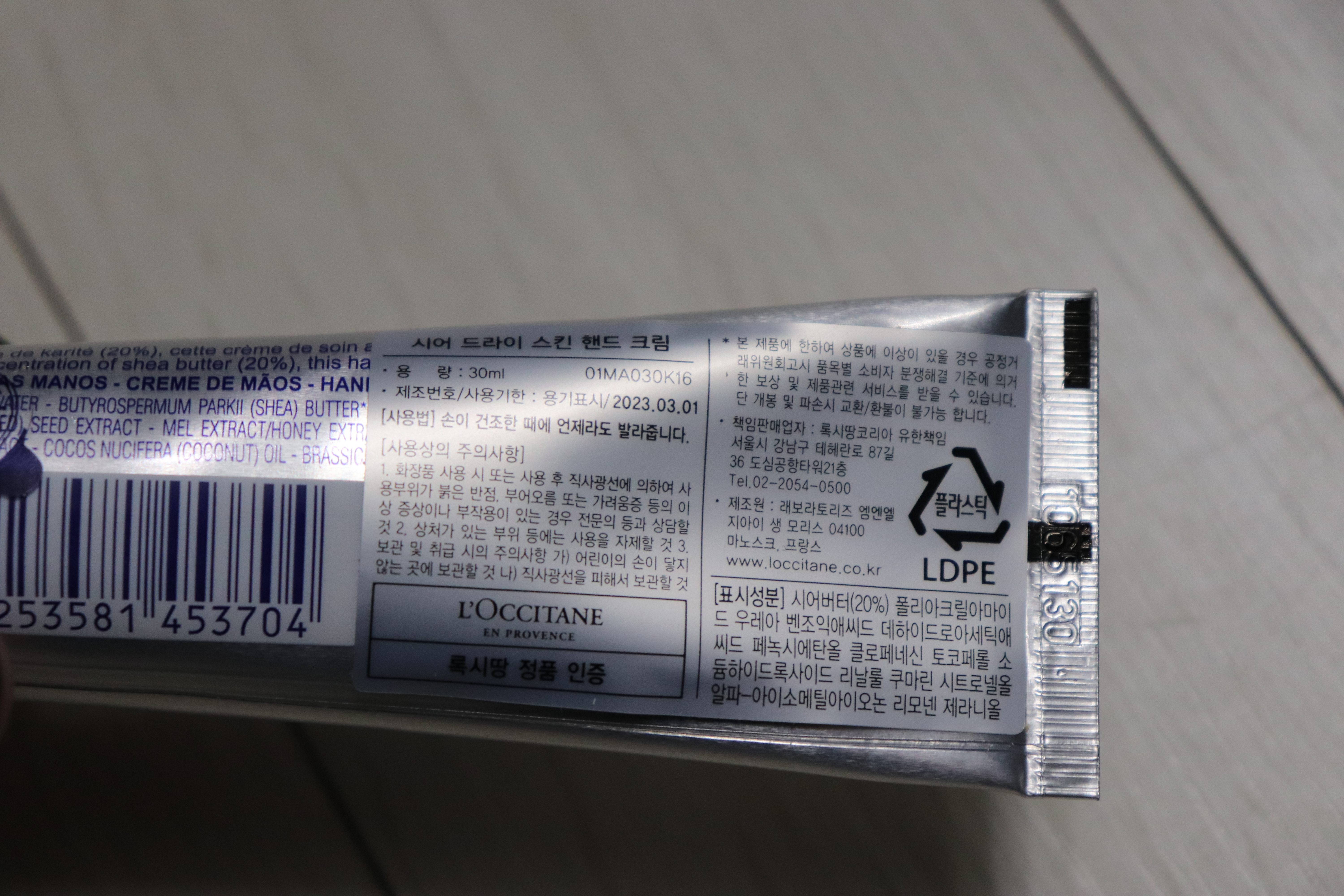 이것저것 다양한 핸드크림을 사용해 보았지만 역시 보습력은 록시땅이 최고인 것 같다. 몇년 전까지만 해도 바르고 나면 한동안 끈적이는 느낌이었는데 해마다 보완을 하고 있는 건지 요즘은 끈적임도 거의 느껴지지 않는다. 풍부한 시어버터가 20%나 함유되어 있다는 록시땅 시어 드라이 스킨 핸드 크림!