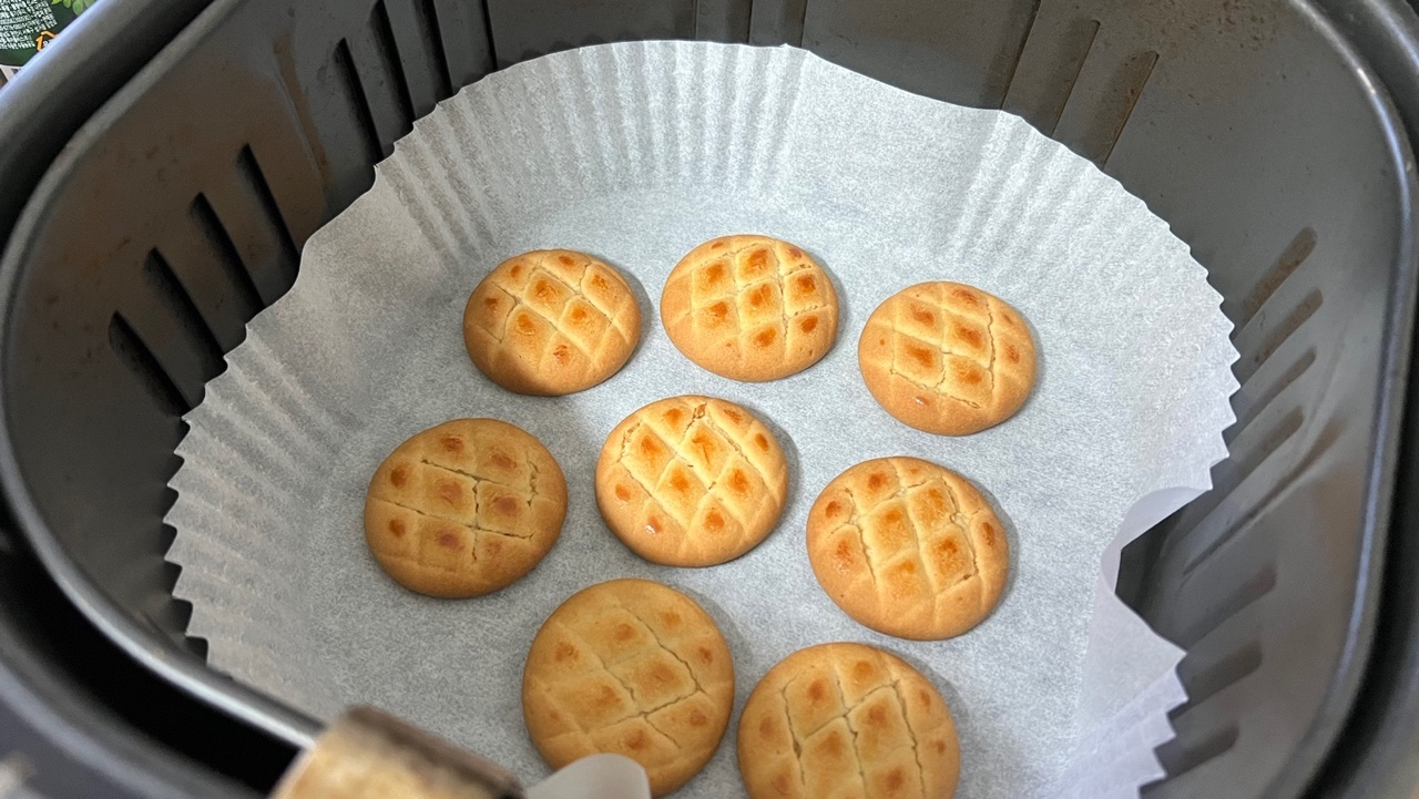 그냥 마가렛트가 전체적으로 부드럽고 촉촉한 느낌이라면 에어프라이어에 구운 마가렛트는 '겉바속촉'이다. 겉은 바삭바삭하고 속은 촉촉한 따뜻한 쿠키가 완성된다. 갓 구운 느낌이라 취향저격 성공! 조금 식혀서 먹으면 겉이 더 바삭해진다. 한입 베어 물자마자 "우와, 이거 뭐야? 맛있는데?" 했다.