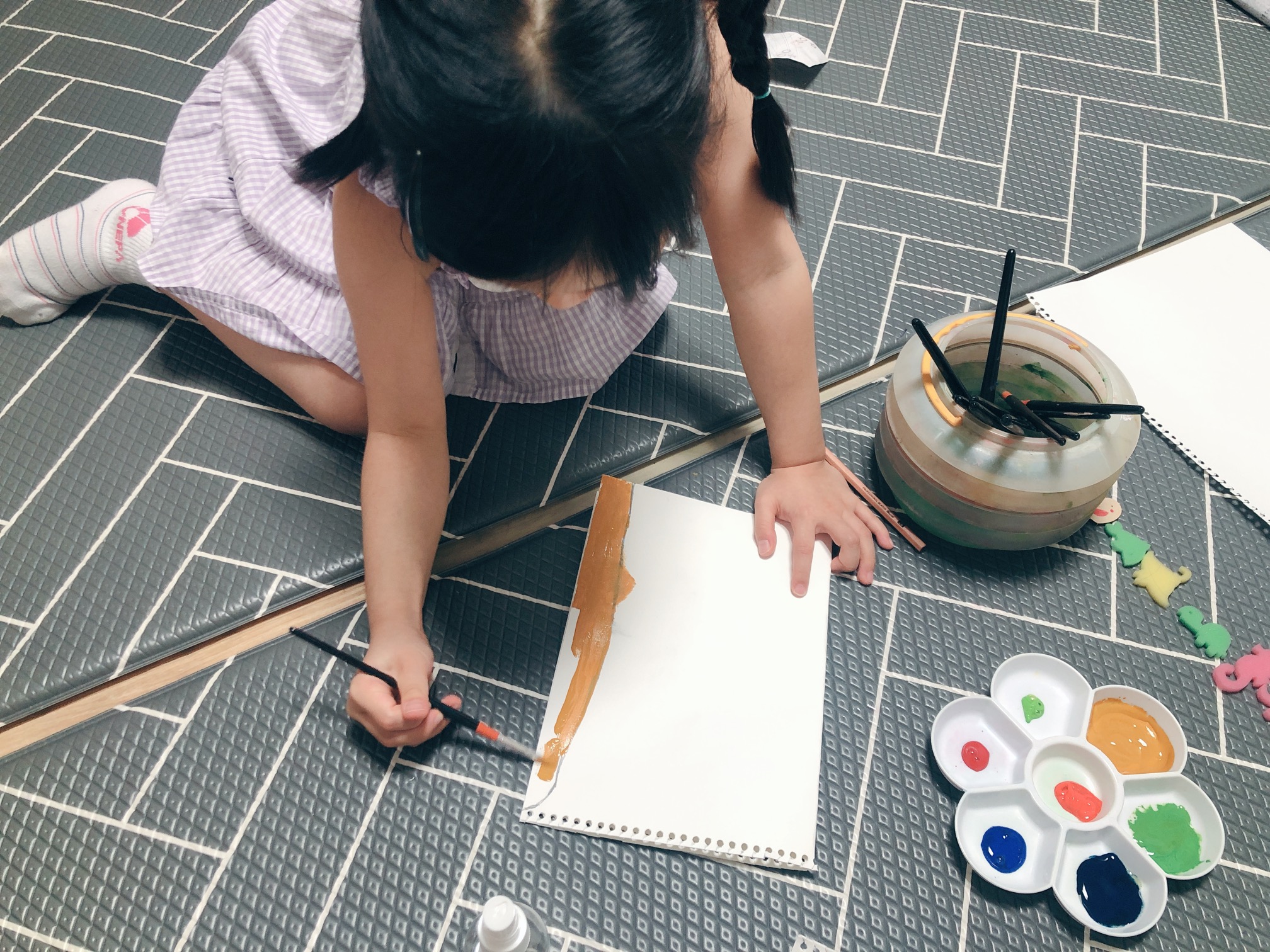 둘째 소요미는 바다 친구들과 개구리를 그렸다. 다 그리고 나서 도화지가 젖을 정도로 물을 충분하게 뿌려 준다.
