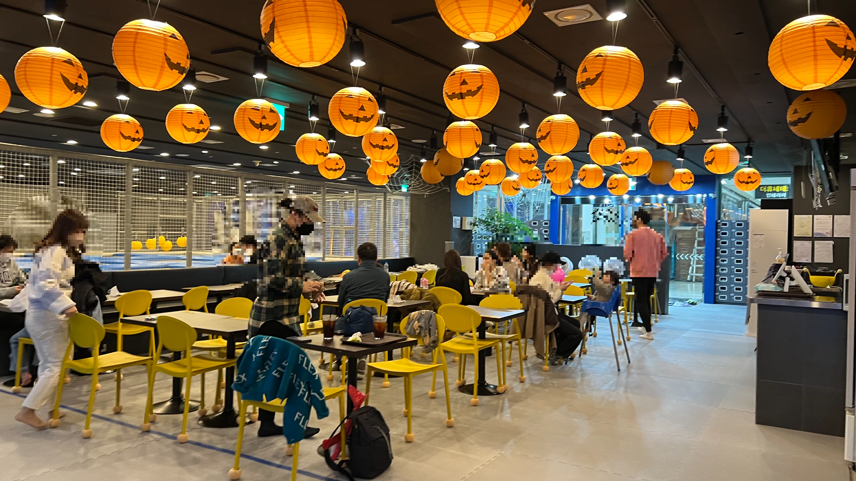 이제 밥도 먹었고 배도 부르니까 실컷 뛰어노는 시간~ 아이들은 신나서 달려가고 나는 이곳저곳 구경을 하며 사진을 찍어 보았다. 가장 먼저 보이는 것은 가장 넓은 공간을 차지하고 있는 트램폴린존(방방장)이었다.
