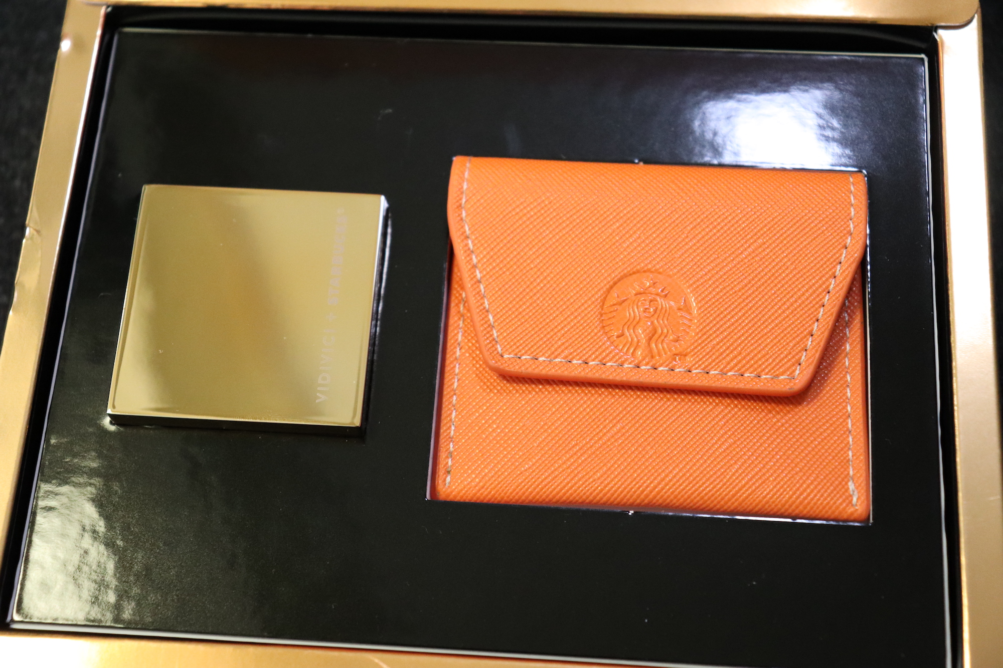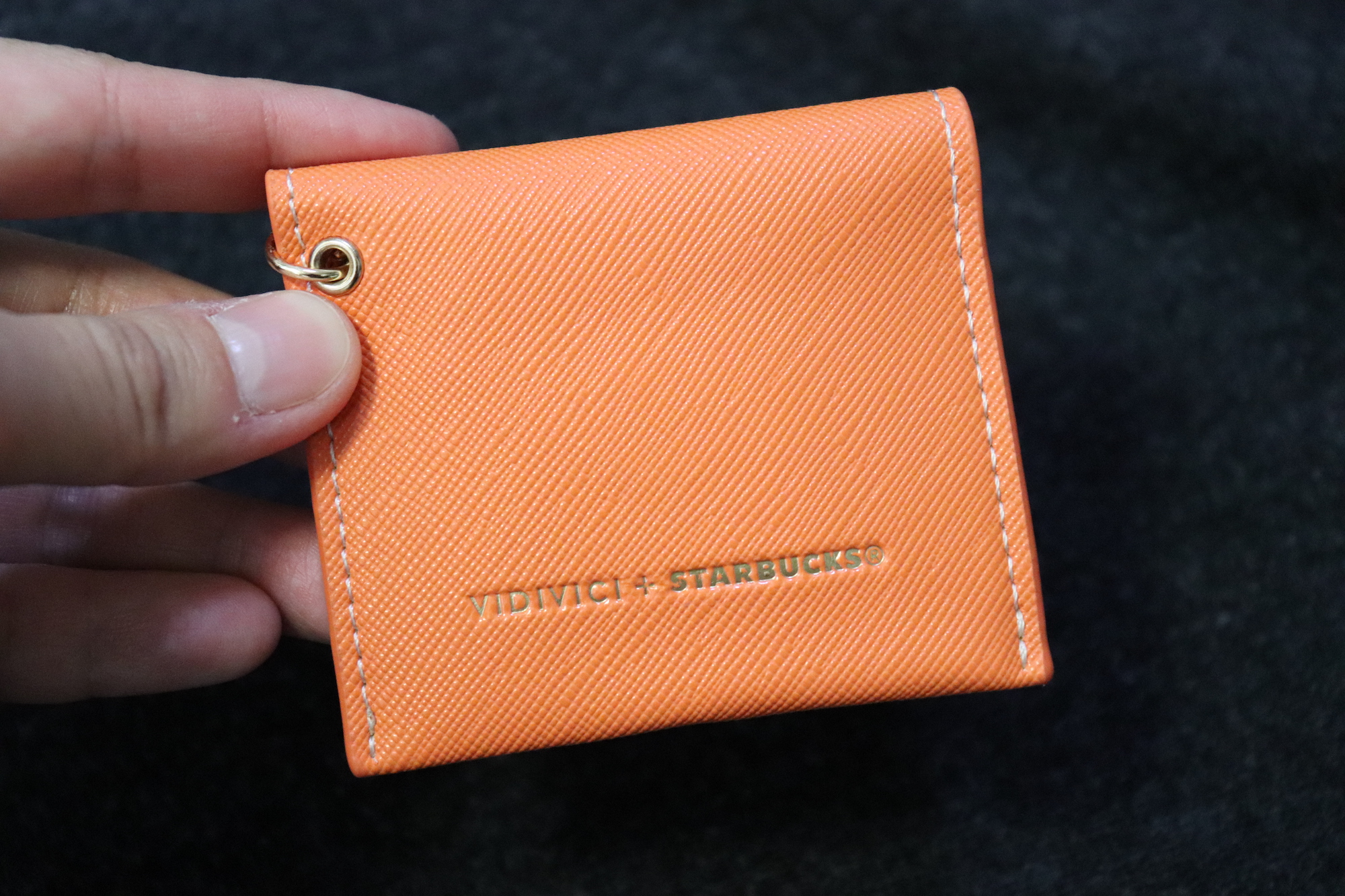 뒷면에는 VIDIVICI와 STARBUCKS 로고가 금박으로 새겨져 있다. 재질은 합성가죽, 금속(아연합금, 철)이다.