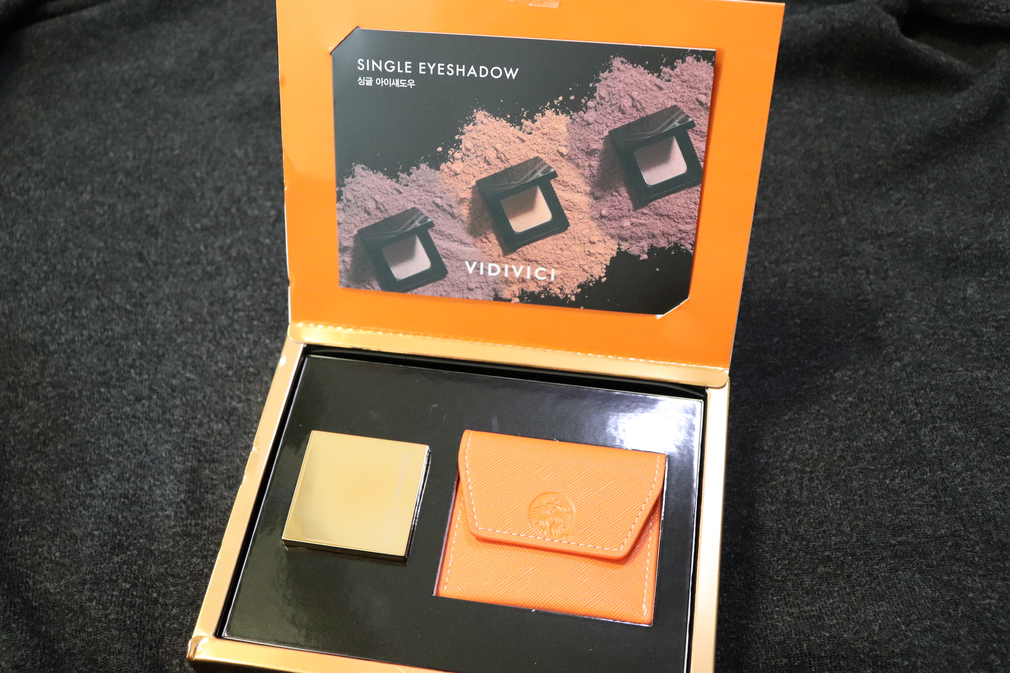 번쩍이는 주황색 호박 케이스에 담겨 있는 비디비치 아이섀도우!