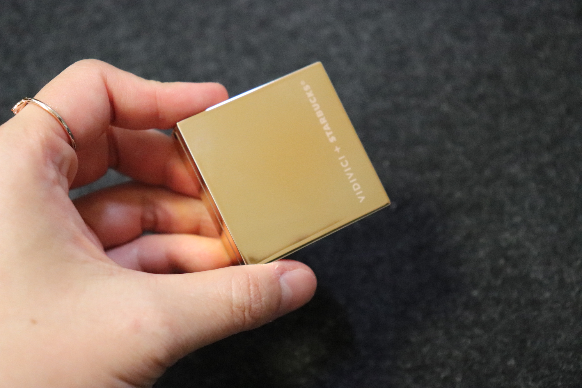 뒷면에는 VIDIVICI와 STARBUCKS 로고가 금박으로 새겨져 있다. 재질은 합성가죽, 금속(아연합금, 철)이다.