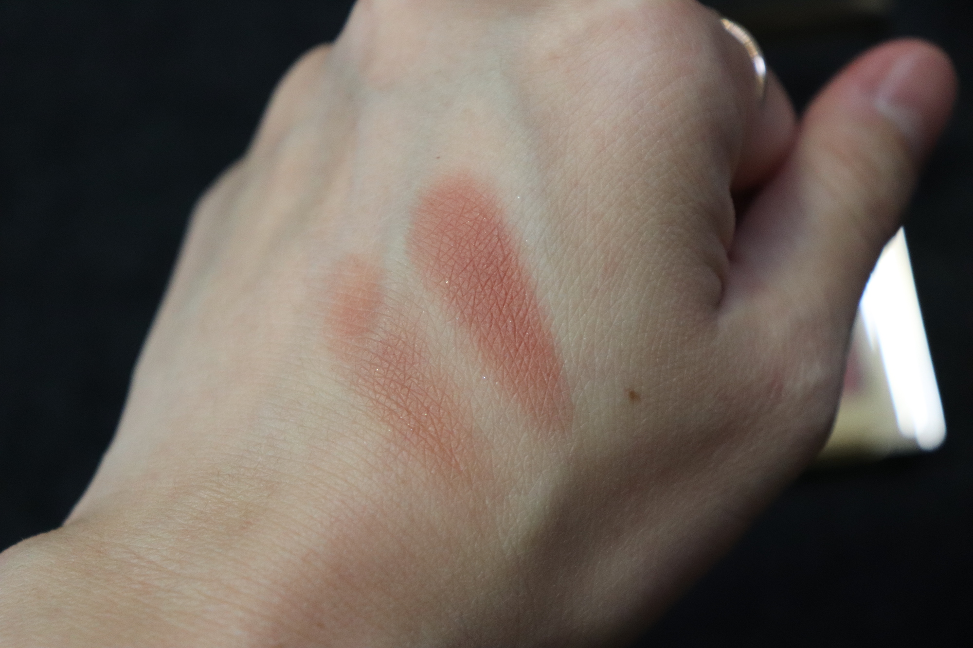 오늘은 화장하는 날이 아니어서(?) 발색은 손등에... 한번 발랐을 때, 두번 발랐을 때 발색 차이 비교~ 개인적으로는 마음에 드는 색상과 발색력을 가지고 있다.