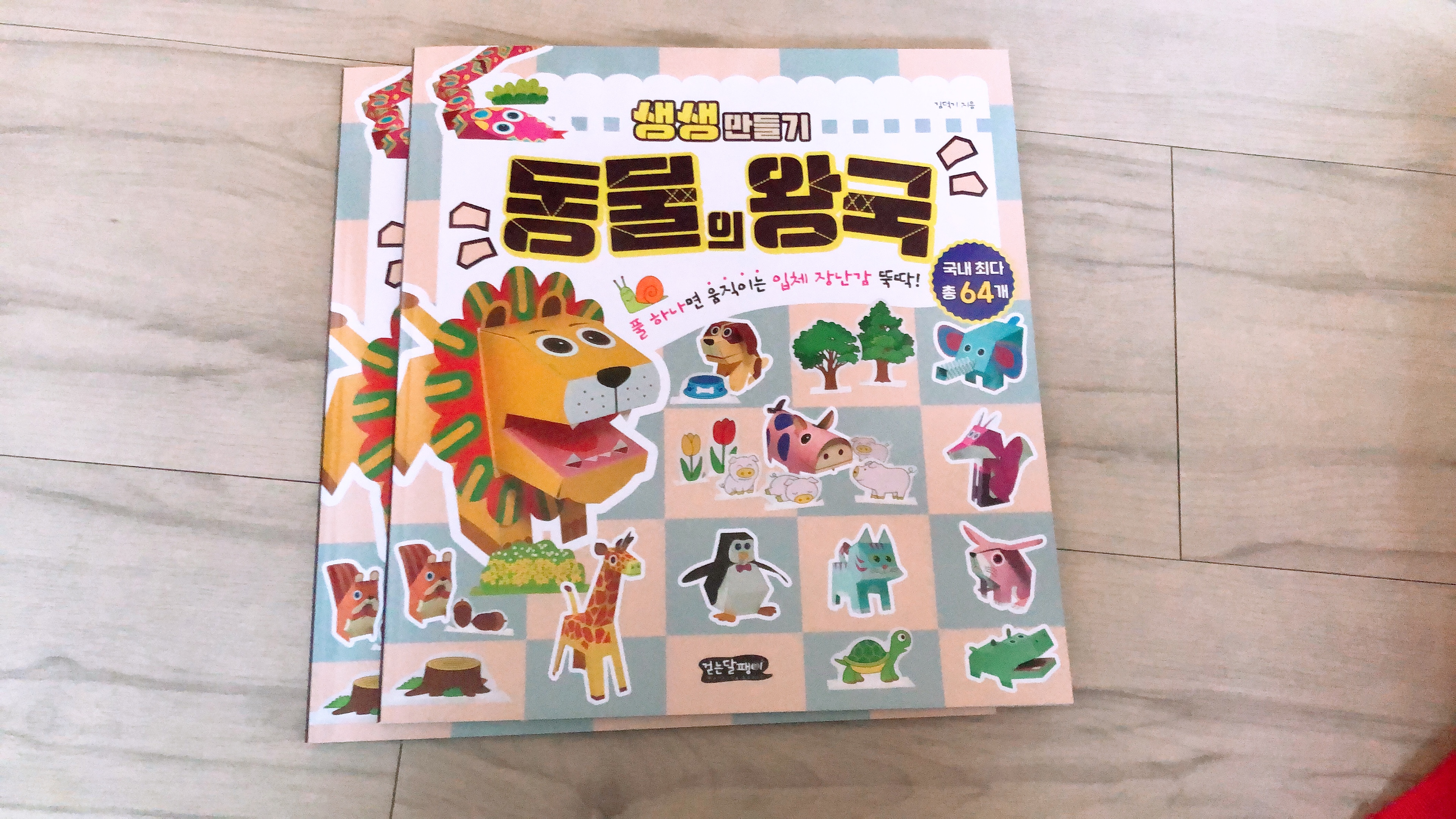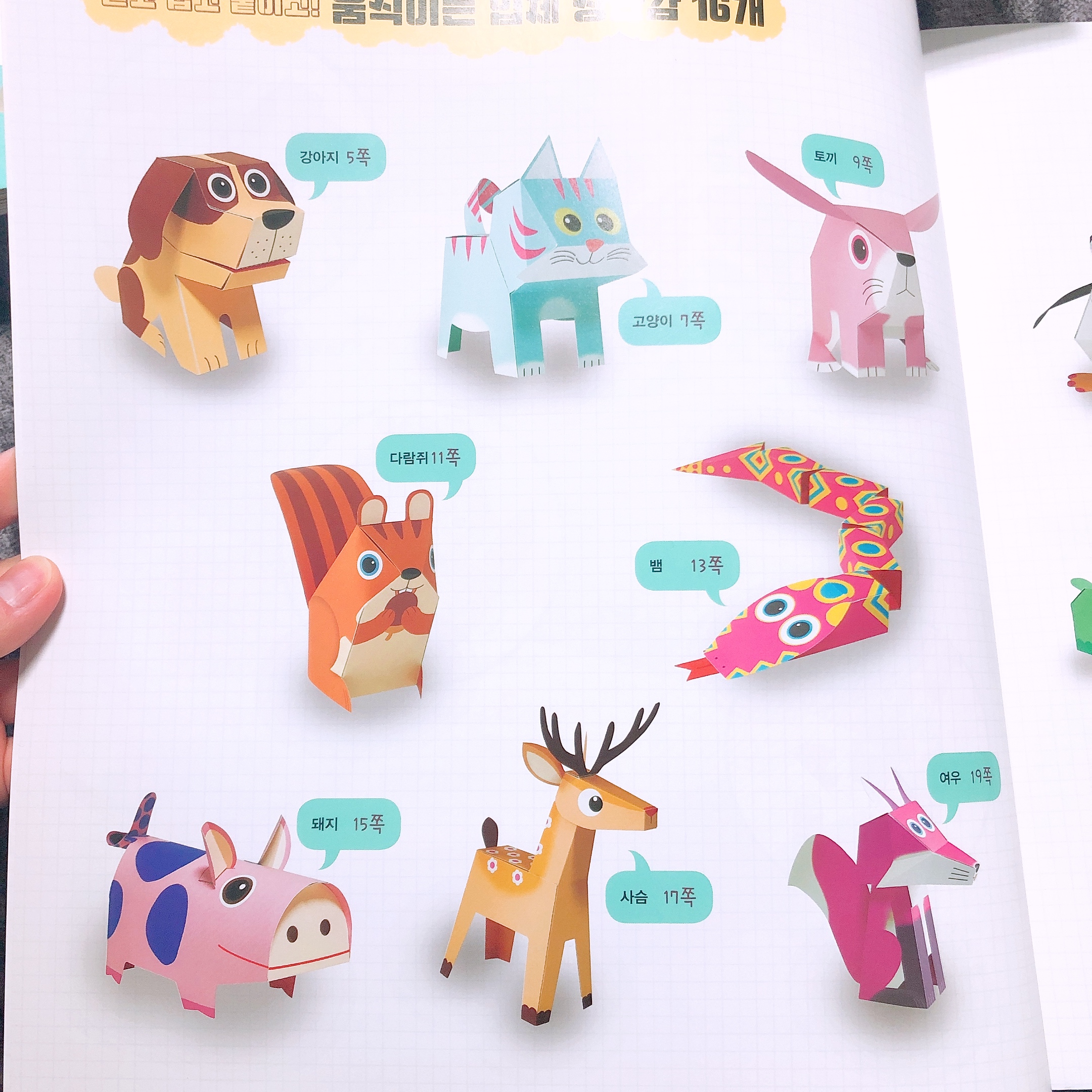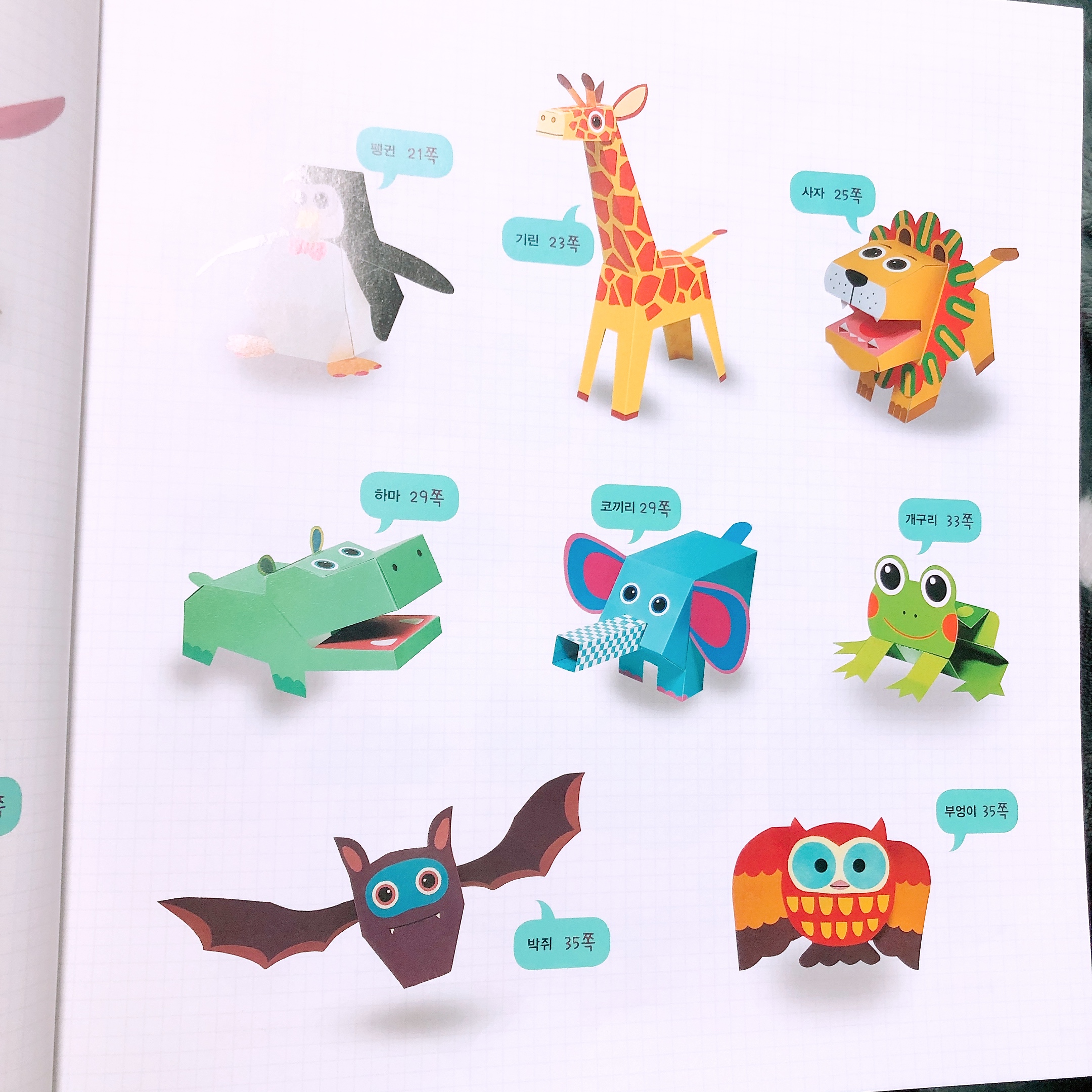 종이로 입체 동물을 만들어 볼 수 있는 책이다. 국내 최다 총 64개의 동물 전개도가 들어 있다고 한다.
