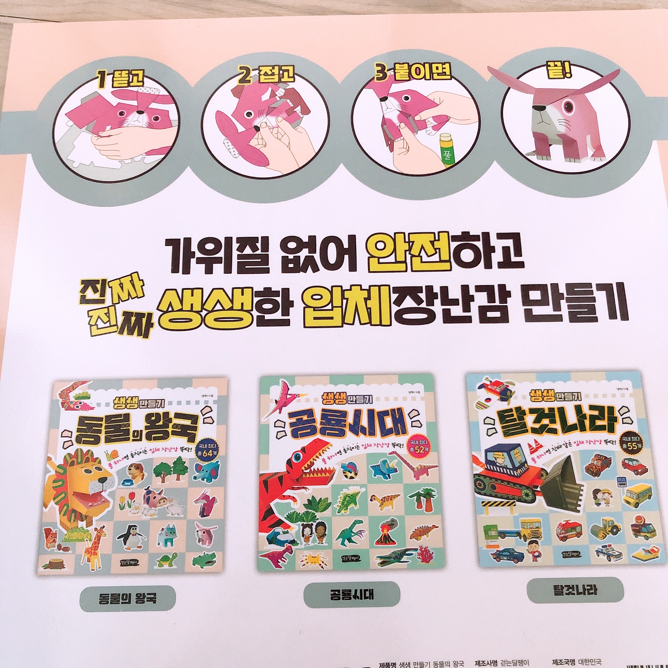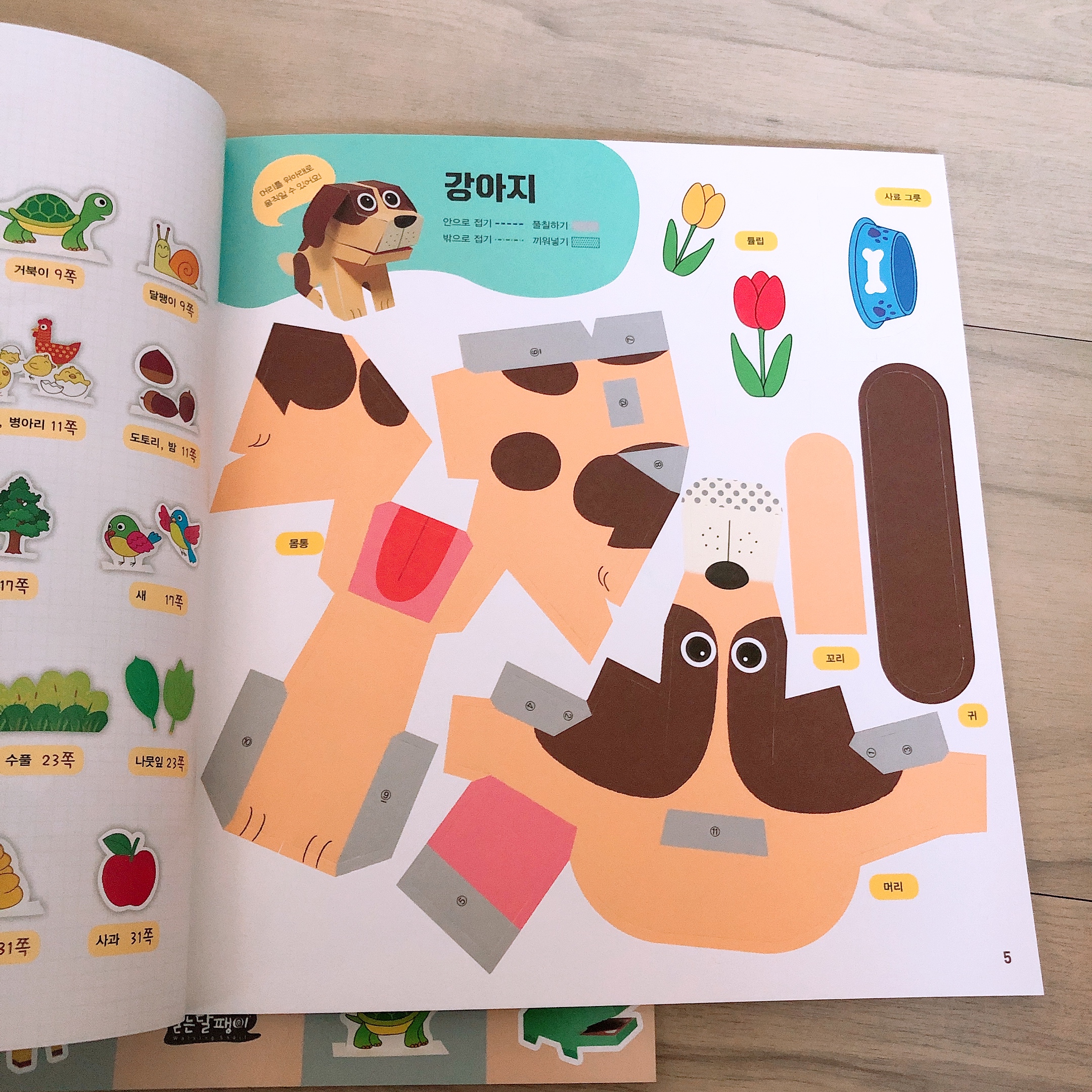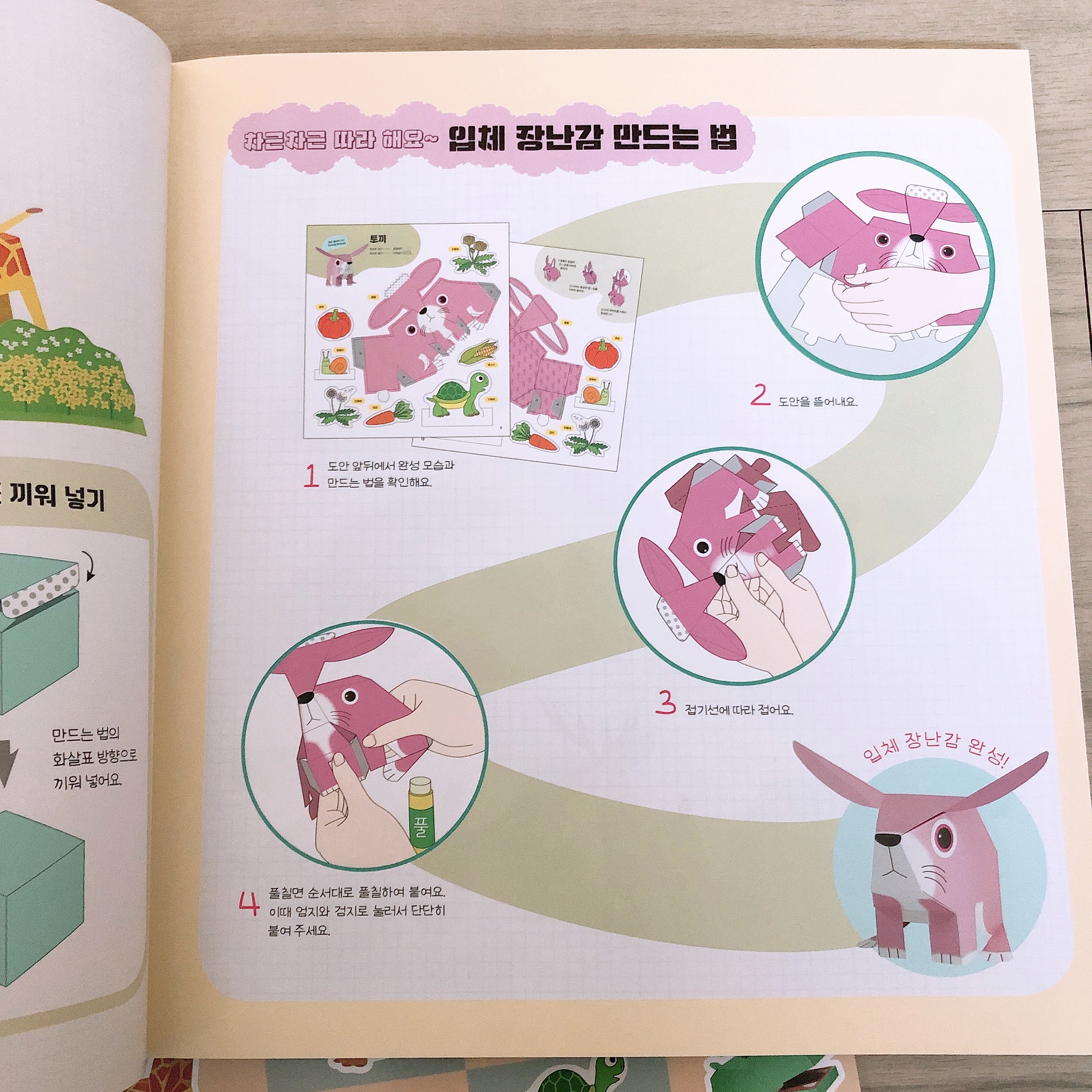 종이로 입체 동물을 만들어 볼 수 있는 책이다. 국내 최다 총 64개의 동물 전개도가 들어 있다고 한다.