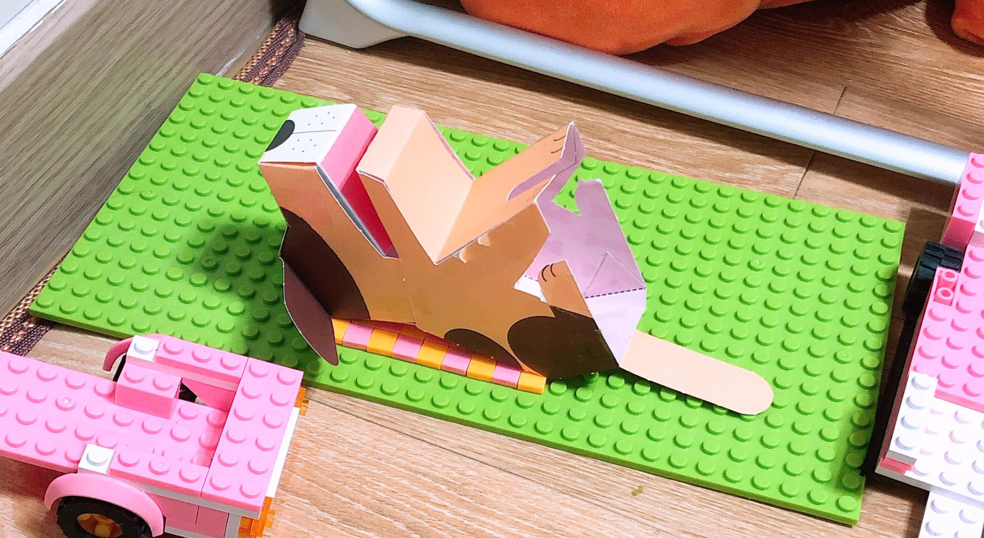 레고 블럭과 함께 콜라보 놀이하니 하루가 순식간에 지나갔다. 먹이를 먹이고 레고 칫솔로 양치를 해 주기도 하고... 새로 생긴 종이 반려견이 마음에 들었는지 이름을 지어 주기도 하고, 자기 전까지 계속 데리고 다녔다.