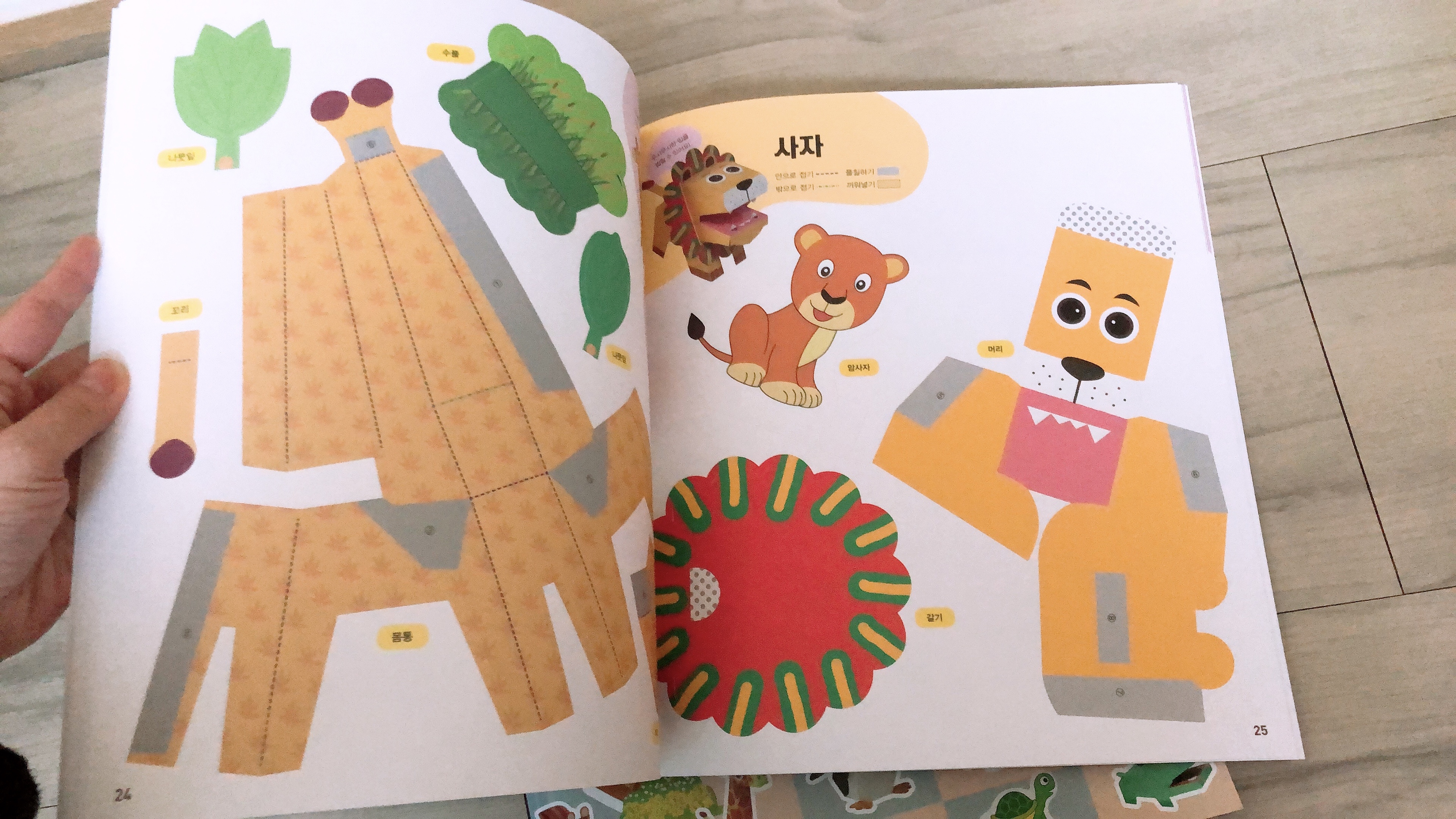 종이로 입체 동물을 만들어 볼 수 있는 책이다. 국내 최다 총 64개의 동물 전개도가 들어 있다고 한다.