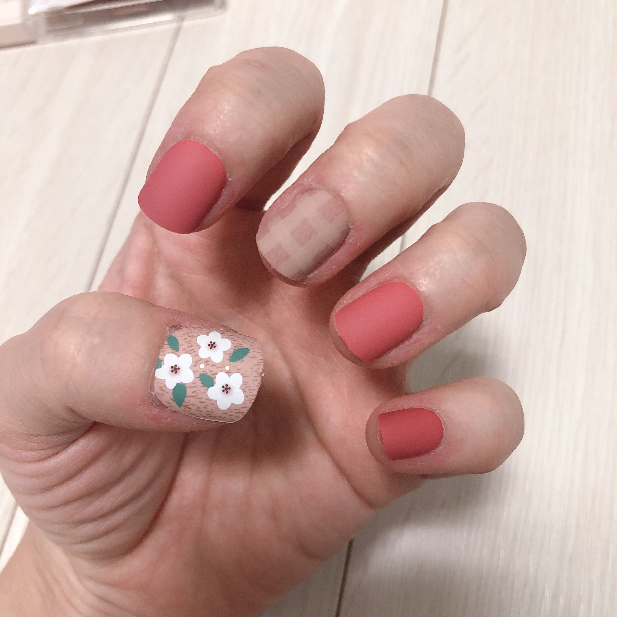 완성! 데싱디바 매직프레스 숏타입은 부착력도 좋고 길이도 적당해서, 손톱이 길지 않은 내게 딱이다. 일상생활에 불편함이 없어 조금 시간이 지나면 내가 네일팁을 붙였다는 사실도 잊어버린다. 이번 셀프네일도 만족~ 매니큐어를 바르는 것은 어렵고, 네일샵까지 가는 것은 부담스러운 분들이 있다면 데싱디바 셀프네일을 추천한다.