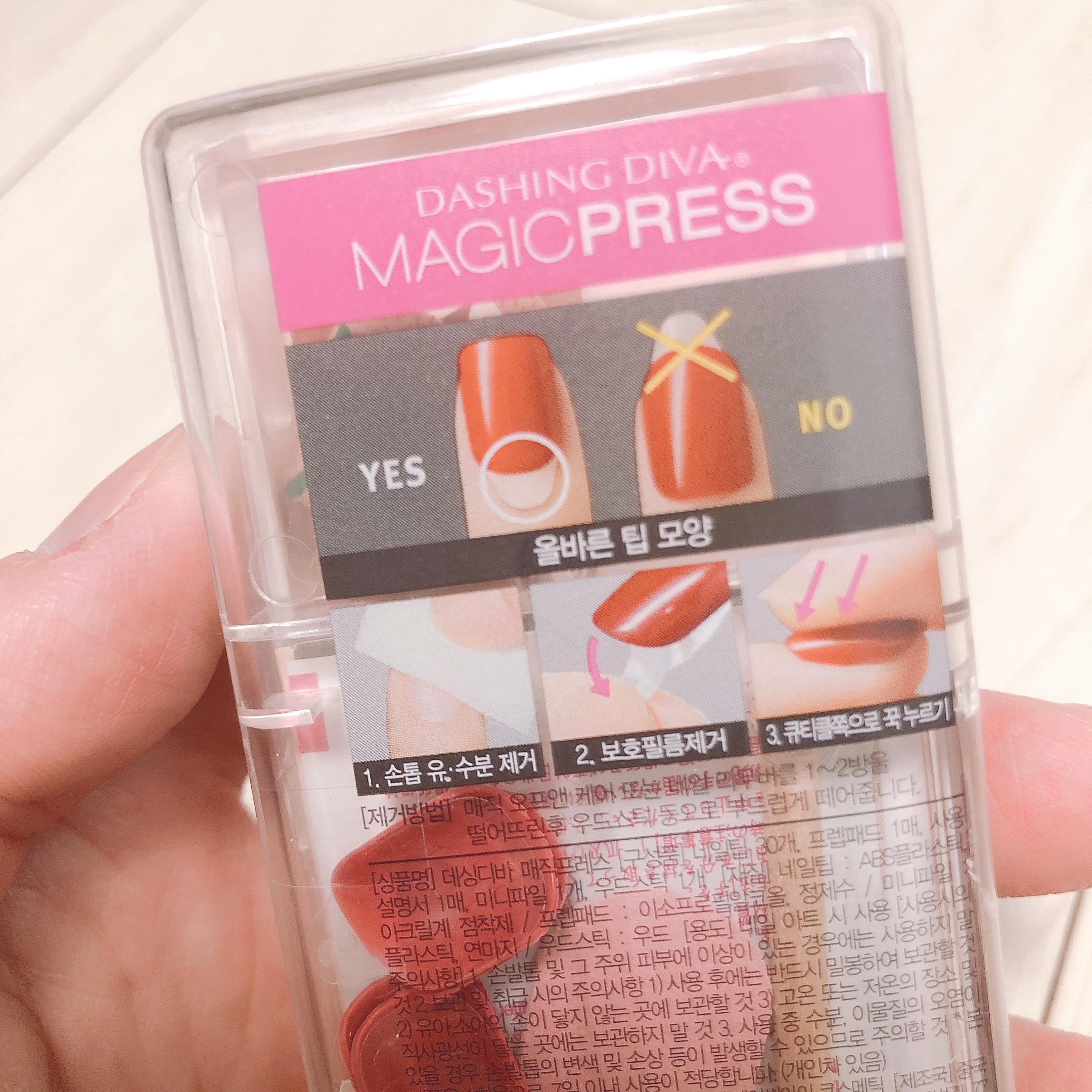 데싱디바 매직프레스 숏타입 러블리 코랄은 꽃,여우, 체크, 도드, 베이직 - 총 다섯개 타입의 패턴을 제공한다. 먼저 어떤 손가락에 어떤 네일팁을 붙일지 사이즈와 디자인을 모두 결정해두면 편리하다. 나는 보통 나의 손톱 사이즈보다 약간 작은 것을 선호하는데, 사이즈를 잘못 고르면 머리감을 때에 머리카락 끼임현상이 있어 조금 불편하다. (이 부분은 약간의 노하우가 필요한 듯) 부착 전 프렙패드를 이용해서 손톱의 유수분을 깨끗하게 제거해 주는 과정도 중요하다.