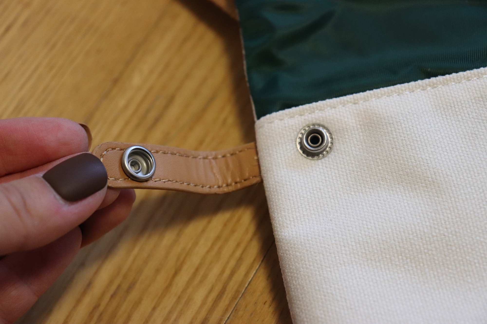 가방의 뒷면에 있는 똑닥이에 다시 잠궈주면, 폴더블 크로스백 완성!