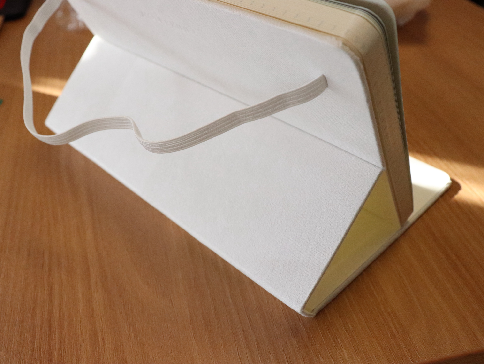 표지의 앞부분이 내지와 분리되어 있어 위 사진처럼 접어서 스탠딩으로 세울 수 있다.