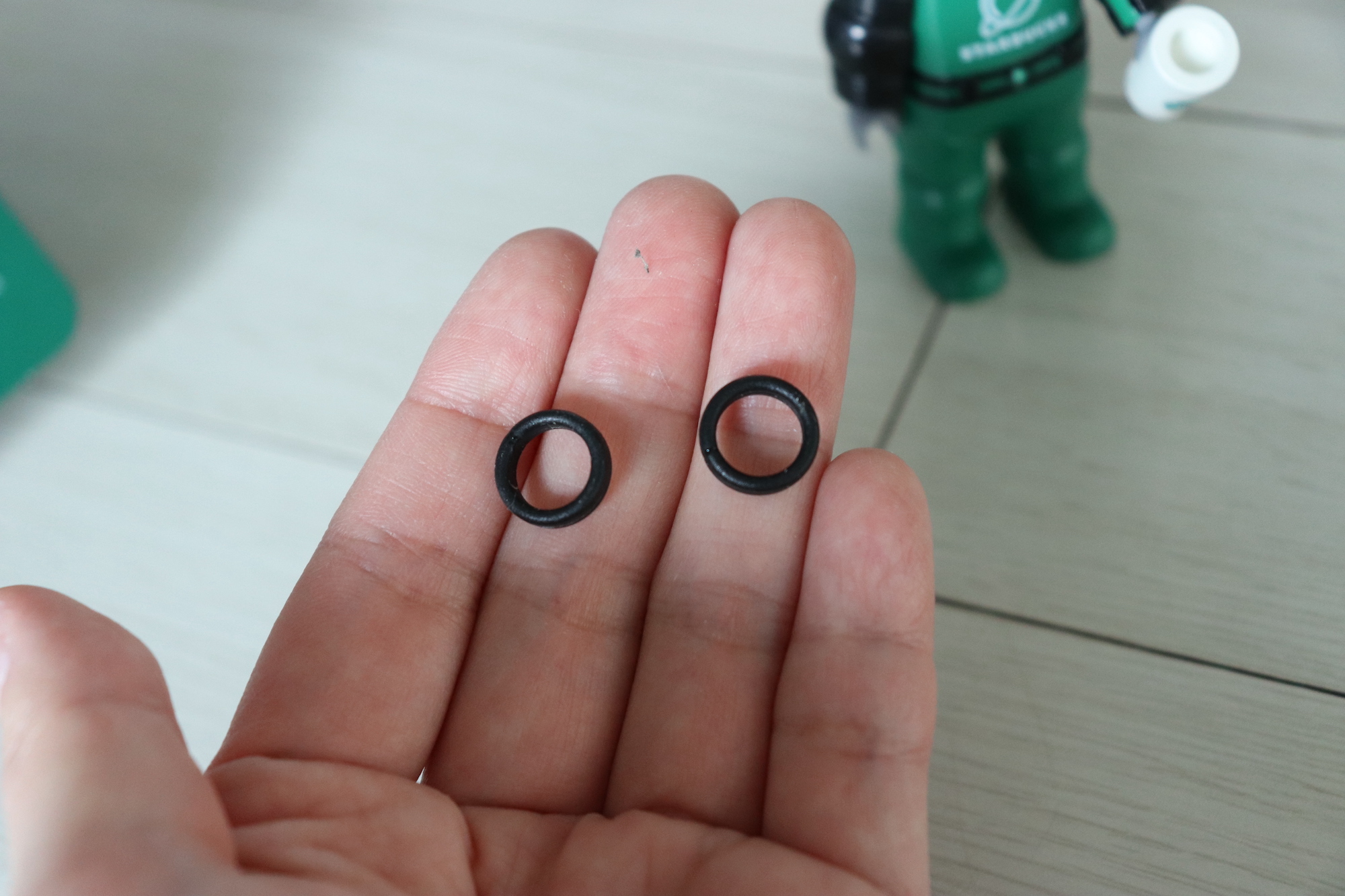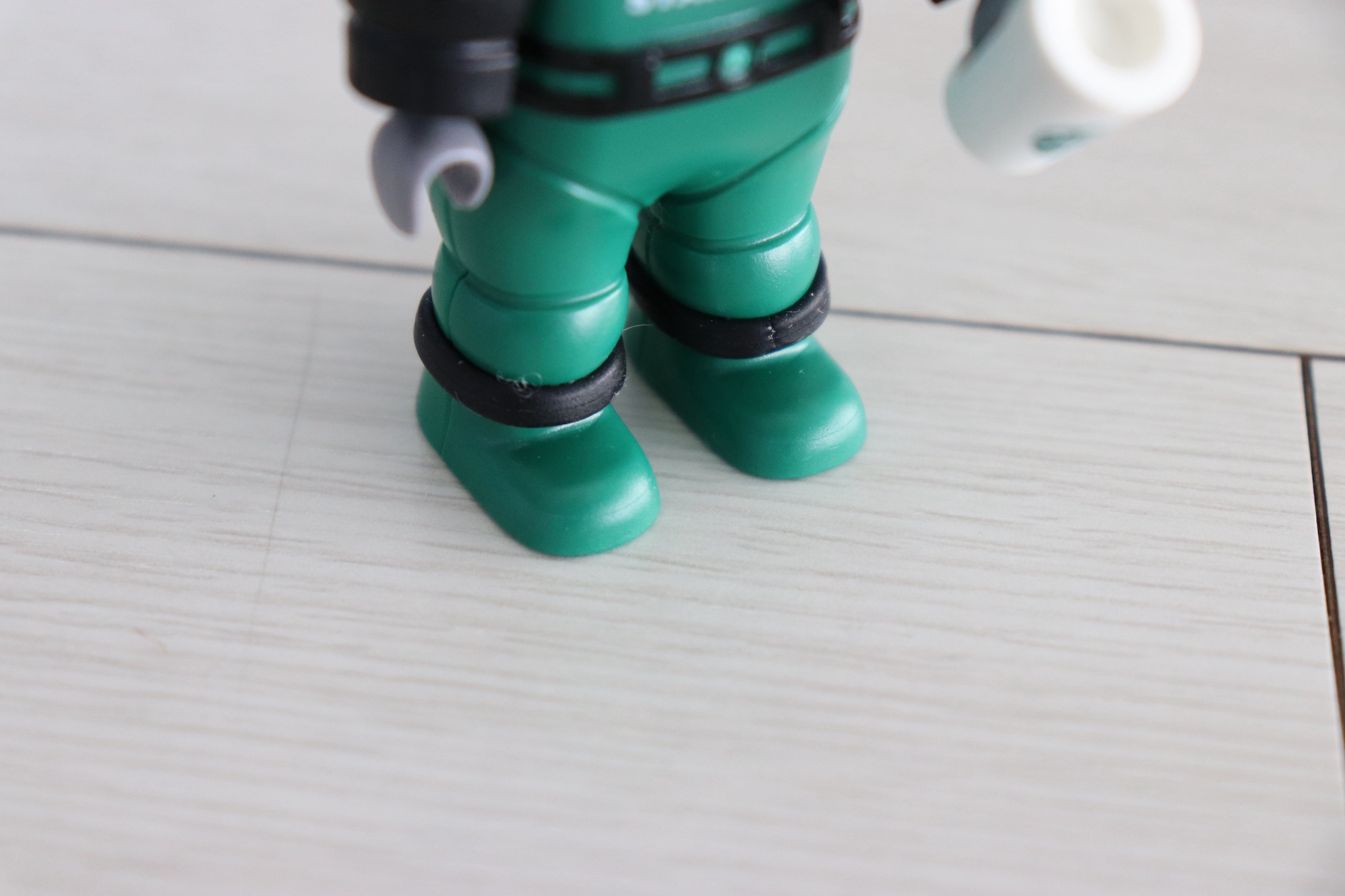 이 고무링은 어디에 쓰는건지 아무리 고민해봐도 알 수가 없었다. 그래서 스타벅스 인스타그램 피드에 들어가서 레오 피규어를 관찰해보았는데 다리에 끼워져 있었다. 고무링을 끼워주니 앞뒤로 조립되어 있는 우주복이 고정된 느낌이 들었다.