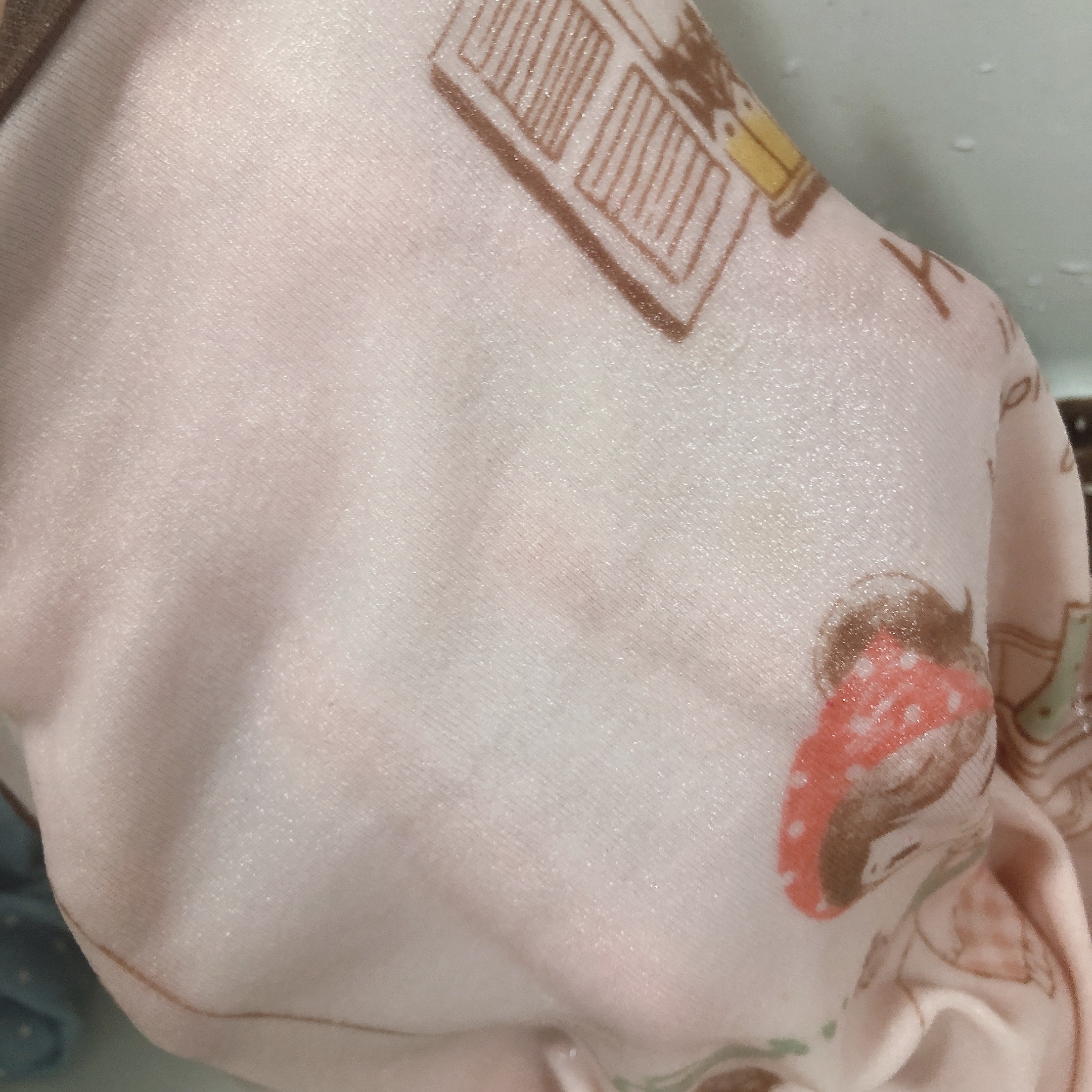 투명한 슬라임 액체라서 사진상으로는 티가 많이 나지 않지만, 내복 상의와 바지 끝단에 슬라임이 붙어서 손으로는 잘 떼어지지 않는다.