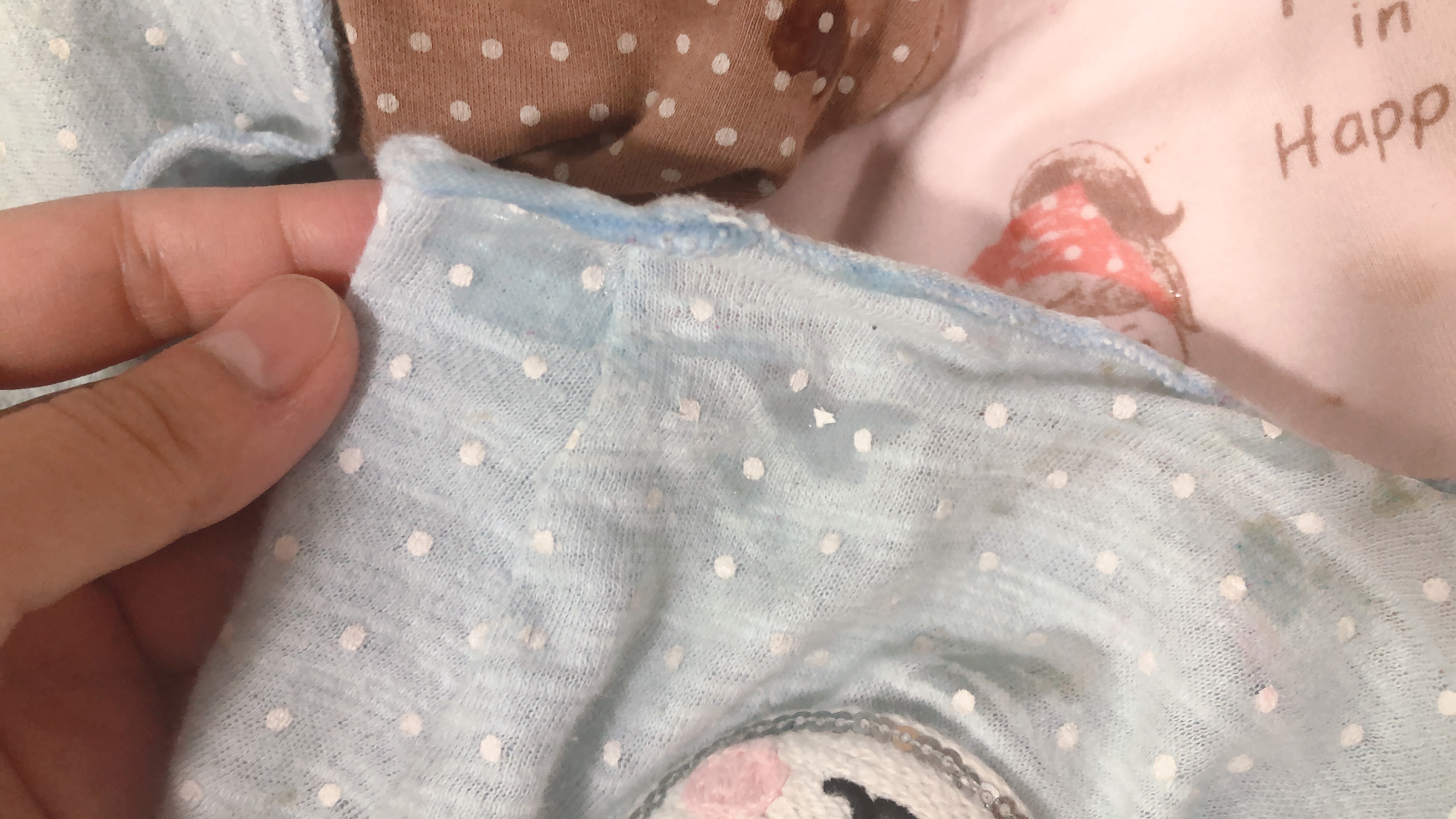 둘째가 신나게 놀다가 "엄마아~" 불러서 보니 가슴팍에 슬라임이 붙어서 떼어내고 있었다. 테이블에서 흘러내린 슬라임은 바지 끝에도 묻고... 내복 상의와 잠옷 바지여서 일단 옷을 갈아입힌 다음 (둘째는 다시 놀이에 열중) 나는 옷들을 가지고 화장실로 갔다.