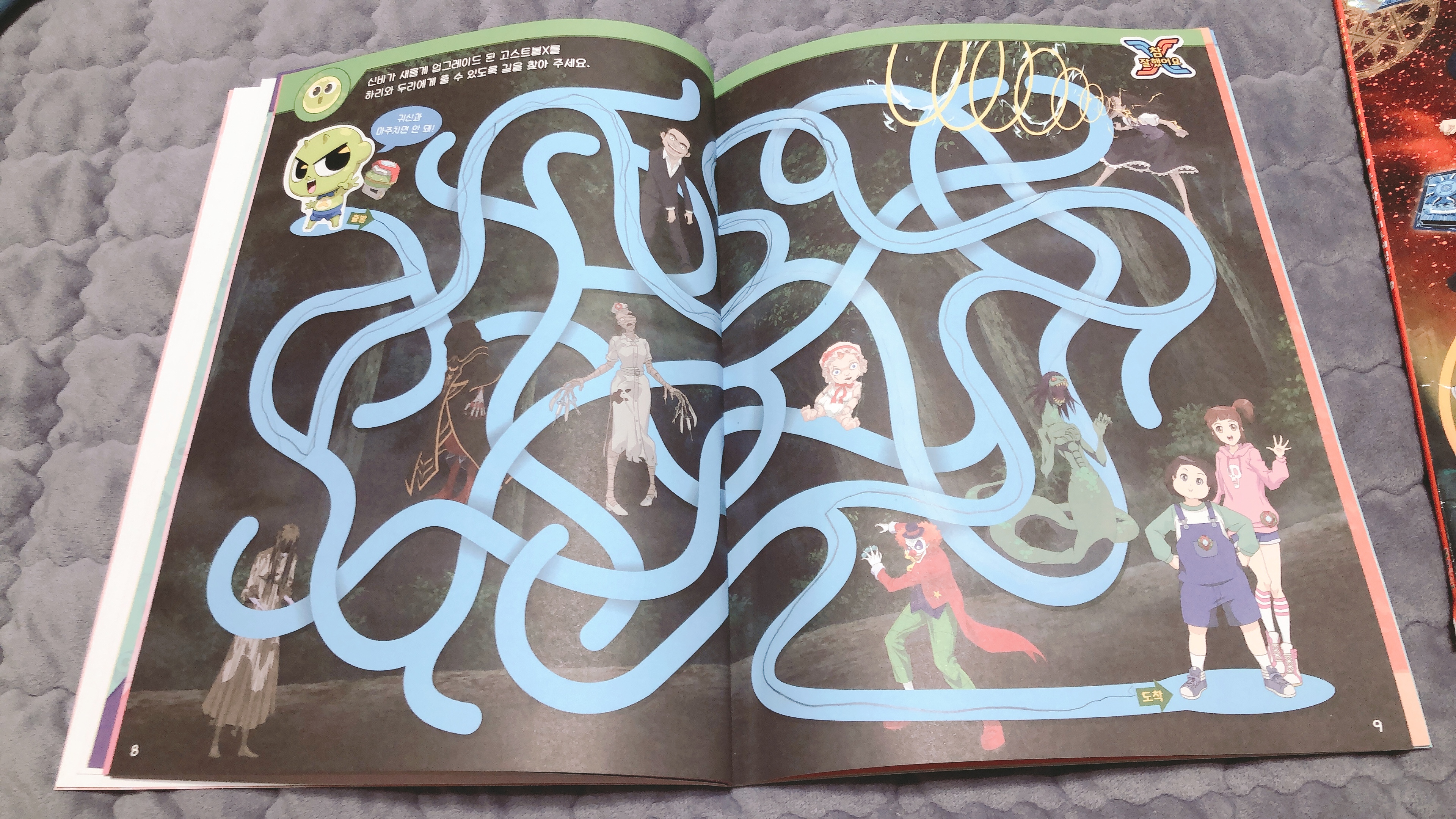신비아파트를 좋아하는 두 딸들을 위해 새로운 집콕아이템을 구매해 보았다. 고스트볼X의 탄생 시즌 테마의 미로게임북이다.