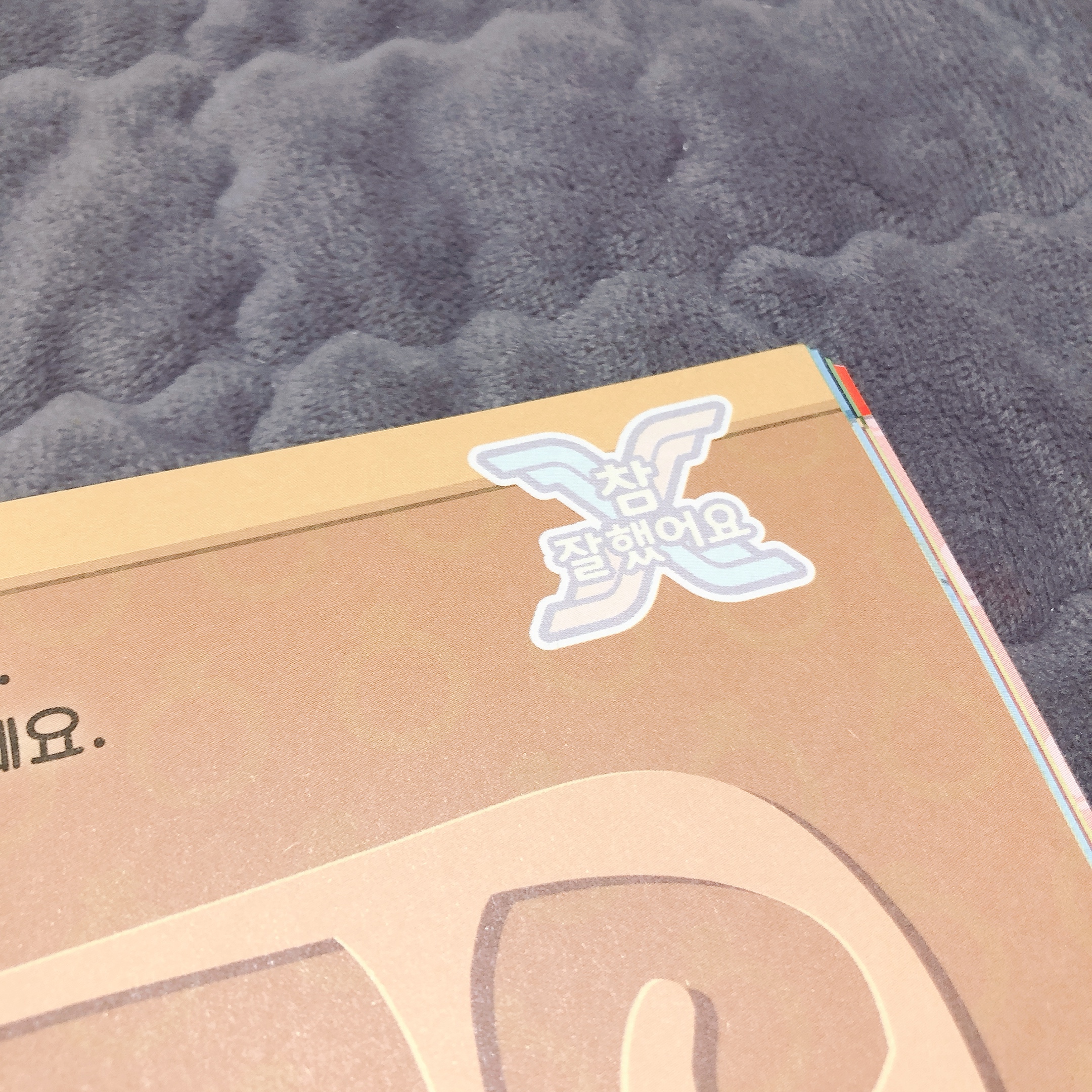 미로의 끝에 무사히 도착하면 이렇게 '스티커를 붙이세요.' 하는 문구와 함께 흐릿하게 캐릭터들이 그려져 있다. 그리고 페이지 상단 부분에 '참 잘했어요' 스티커 붙이는 자리도 있다. 미로찾기를 하나 성공할때마다 스티커를 찾아 붙이는 깨알같은 재미!