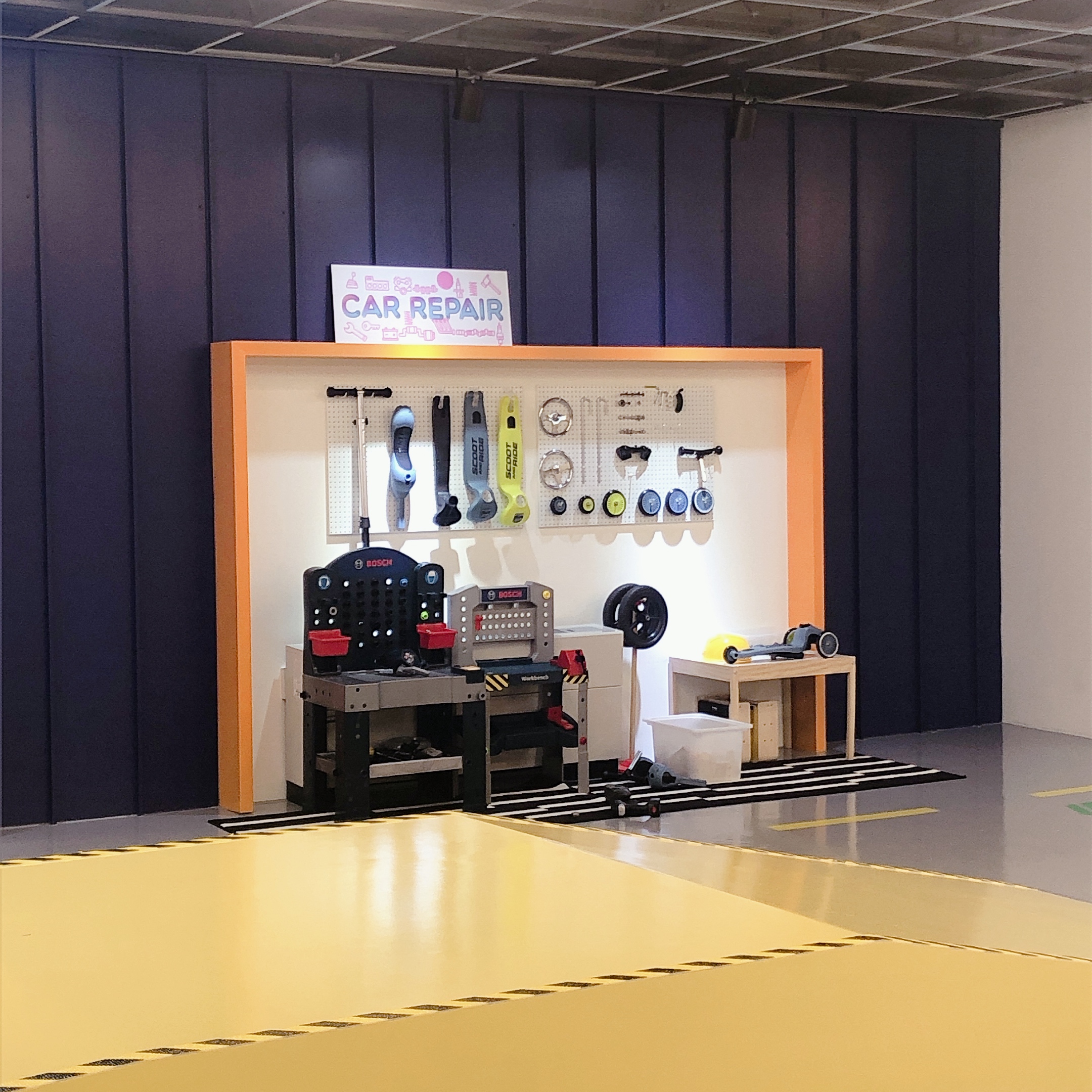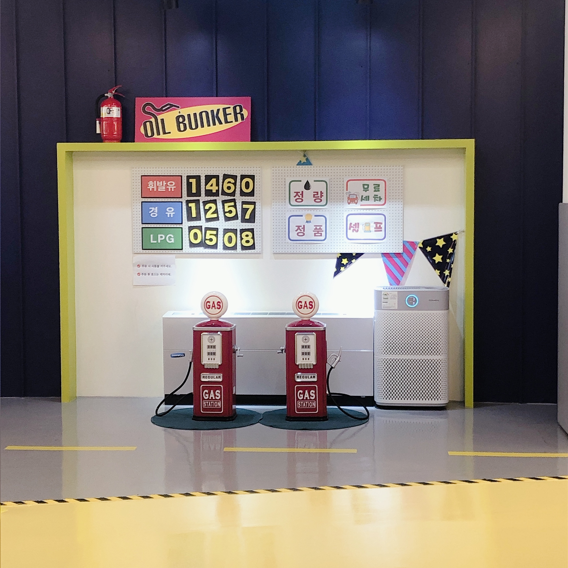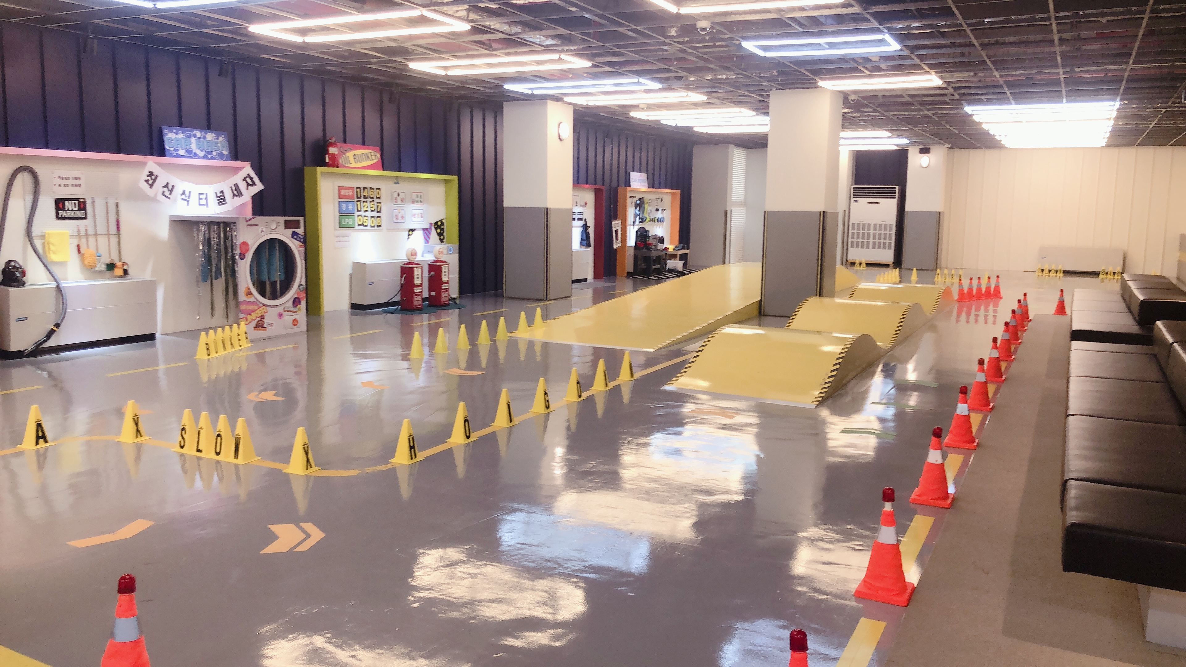 유턴하여 돌아오는 길에는 주유소, 정비소, 세차장, 경찰서 공간이 아기자기하게 꾸며져 있다. 가까이 다가가 보니 꽤 리얼하여 역할놀이가 가능할 것 같은데 우리 아이들은 별 관심이 없다.